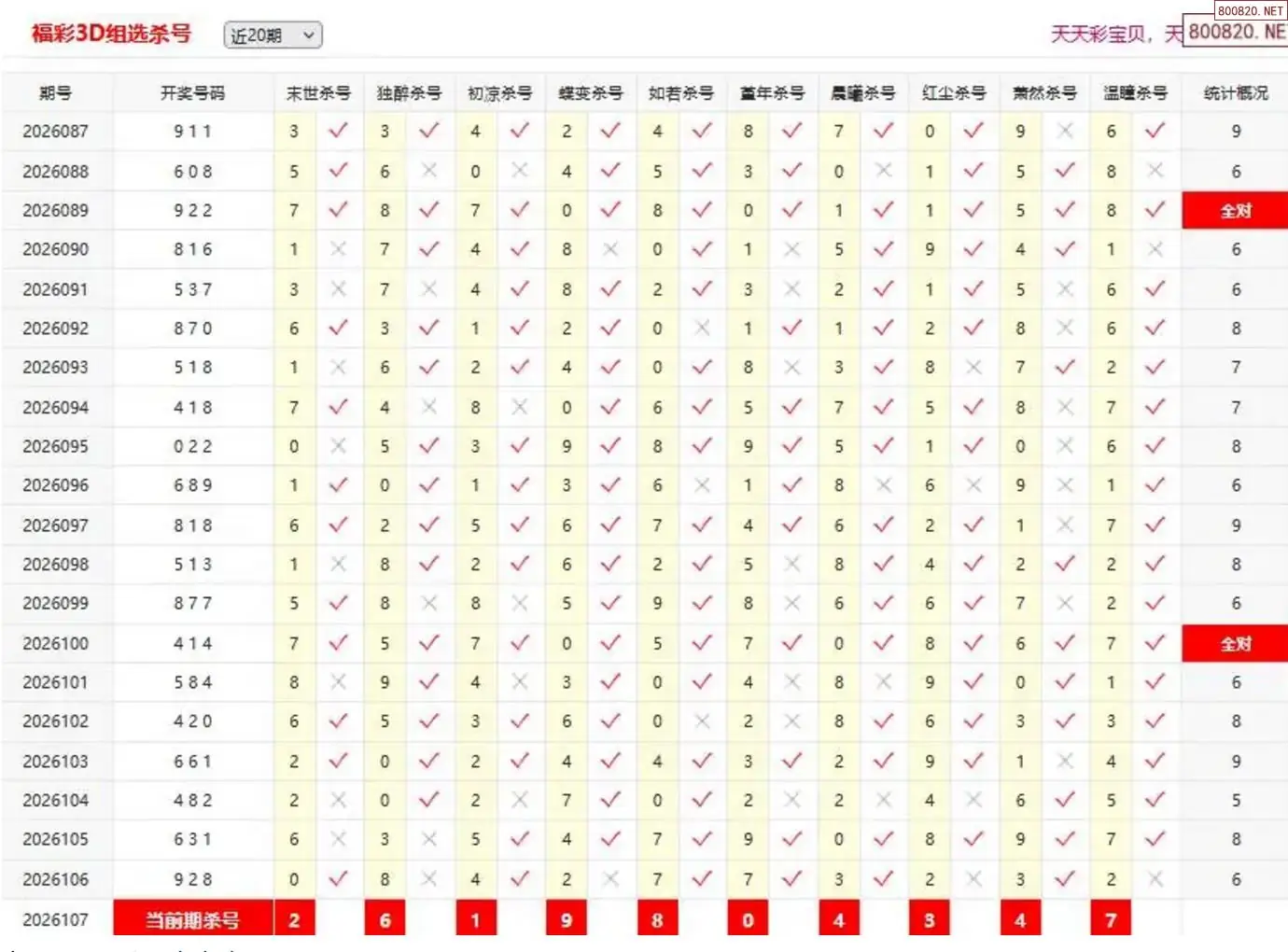 3D107期天中财神原创杀码条件汇总