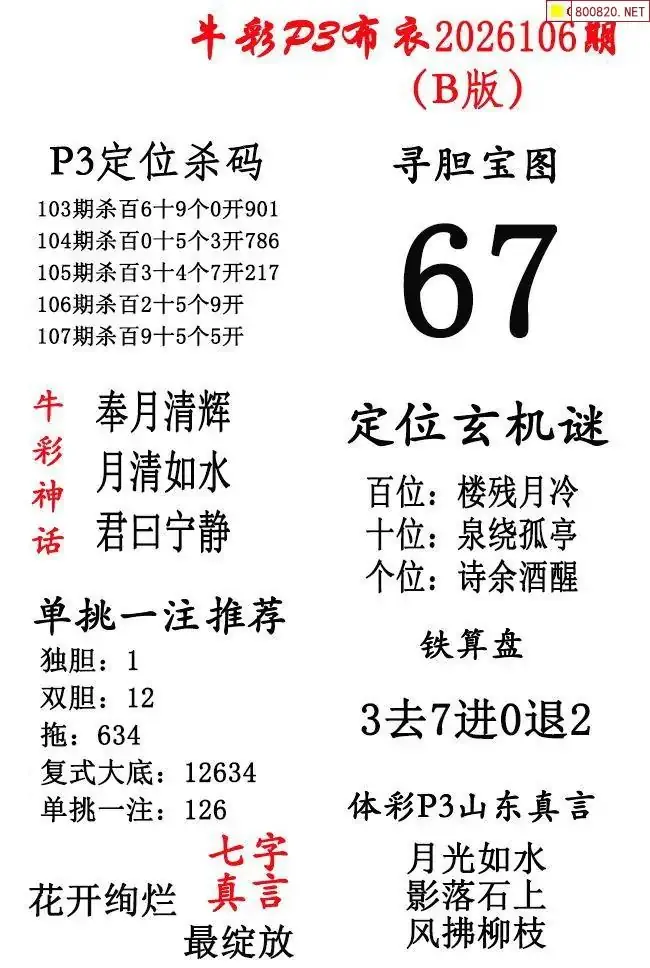 2026年107期北盟天机图+p3仙机图谜 _排三图谜专区