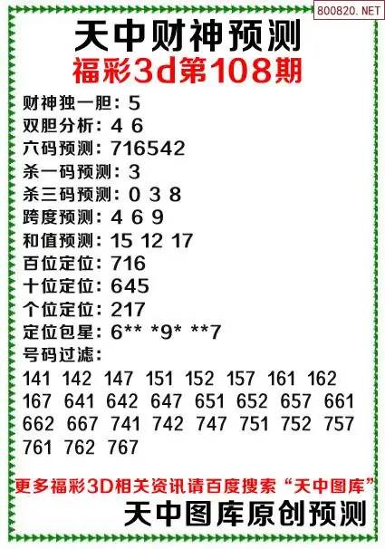 108期财神3d综合预测分析