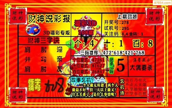 26年108期财神说彩3D综合图(原创)_3d财神到财神送胆