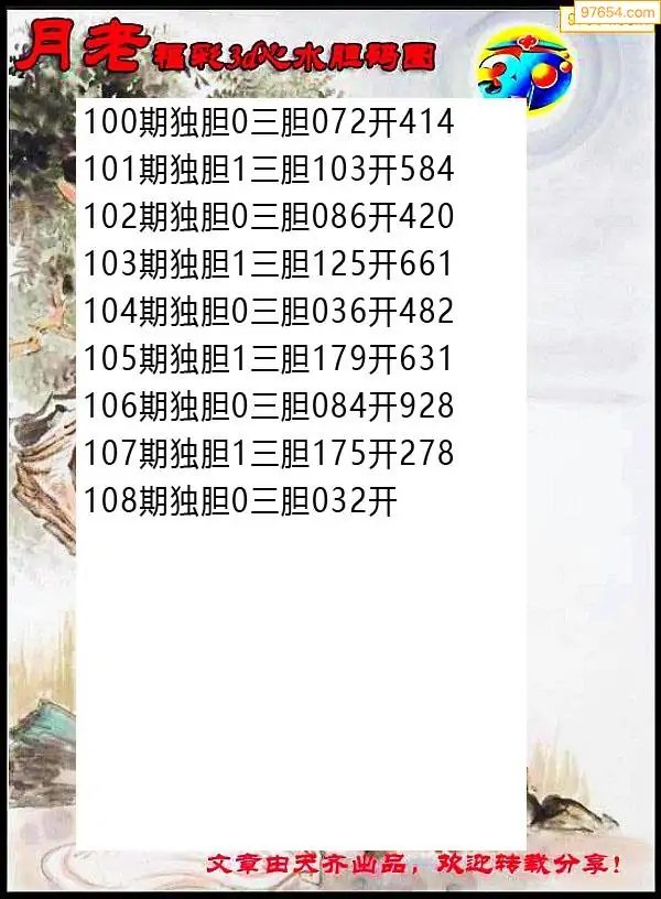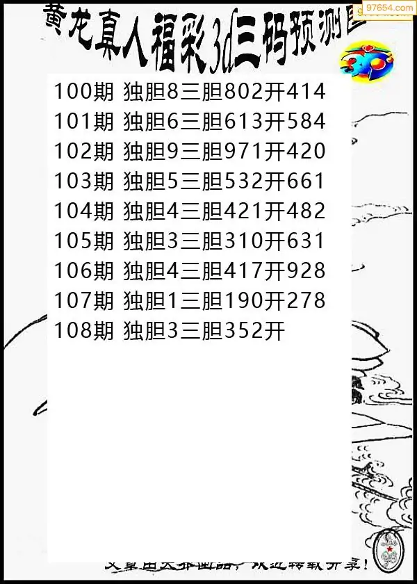 2026108期彩彩网3d原创图迷搜集(天中整理)