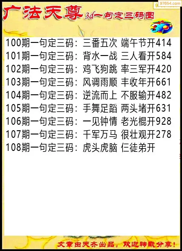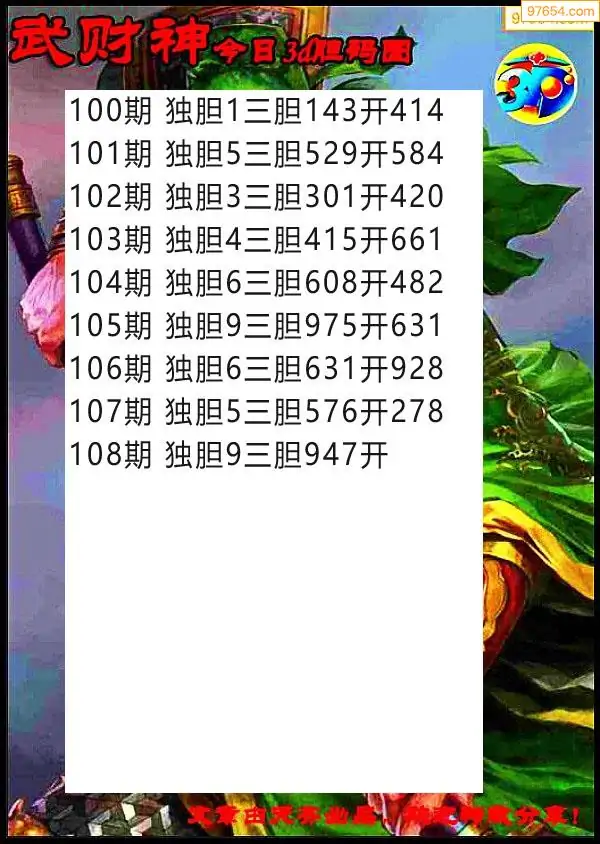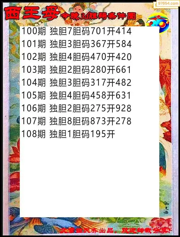 108期97654本站收集胆码出号预测