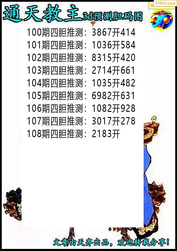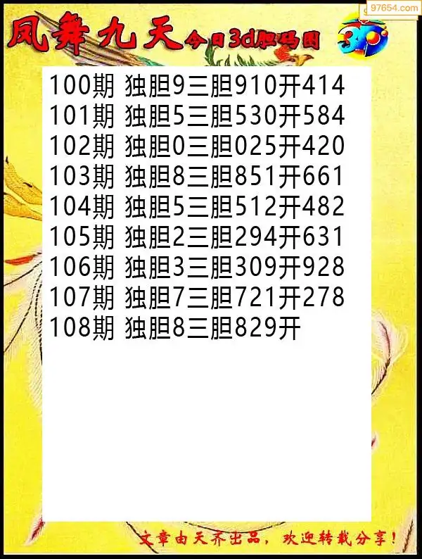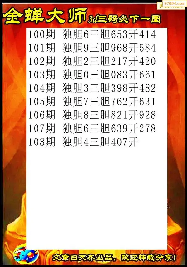 天齐网3d26年108期胆码图 胆:53