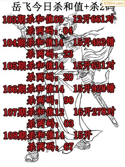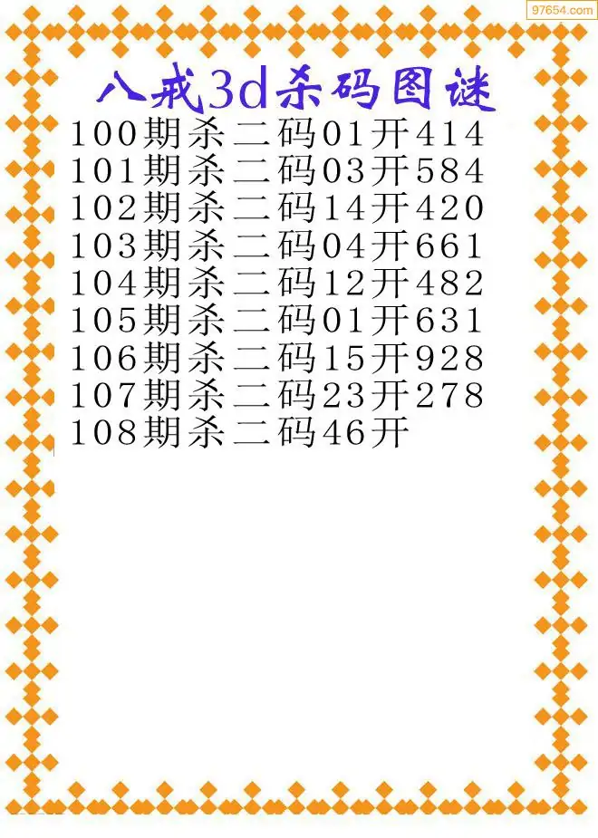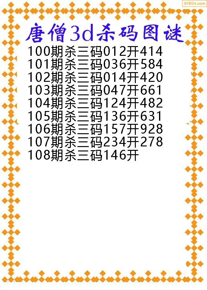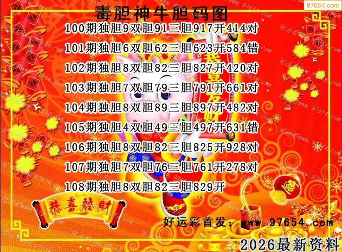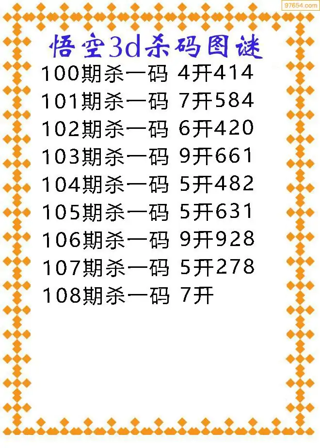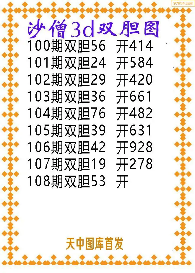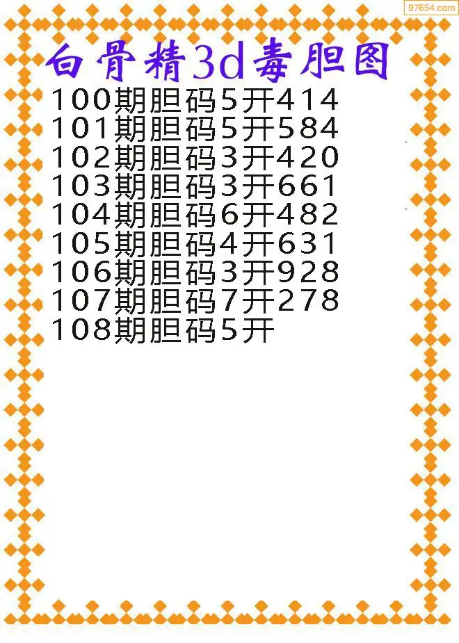 108期97654本站收集胆码出号预测