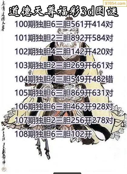 2026108期彩彩网3d原创图迷搜集(天中整理)