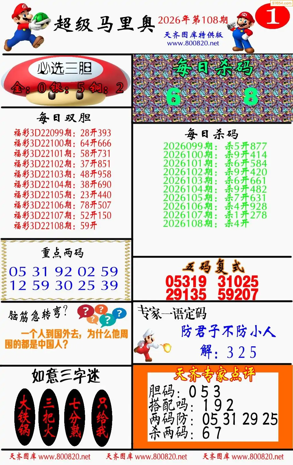 3d福彩108期马里奥两版彩报