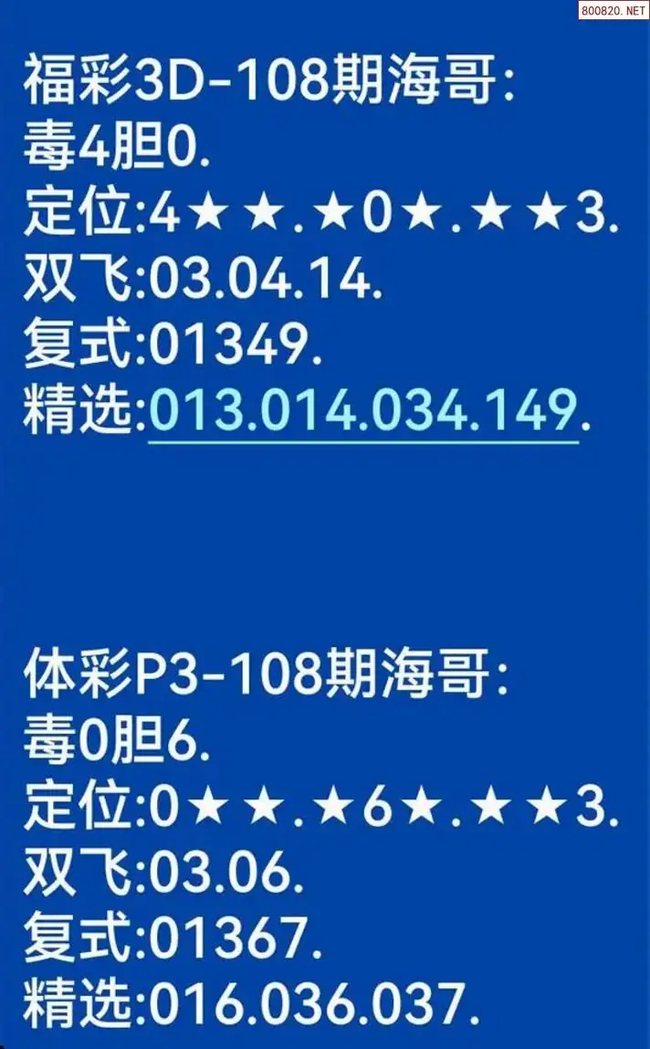 海哥福彩108期3d今日双胆