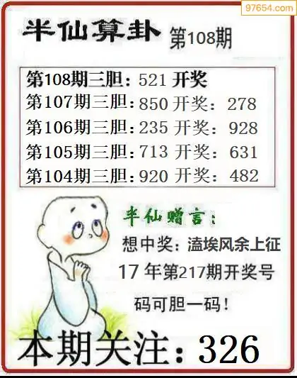 108期97654本站收集胆码出号预测
