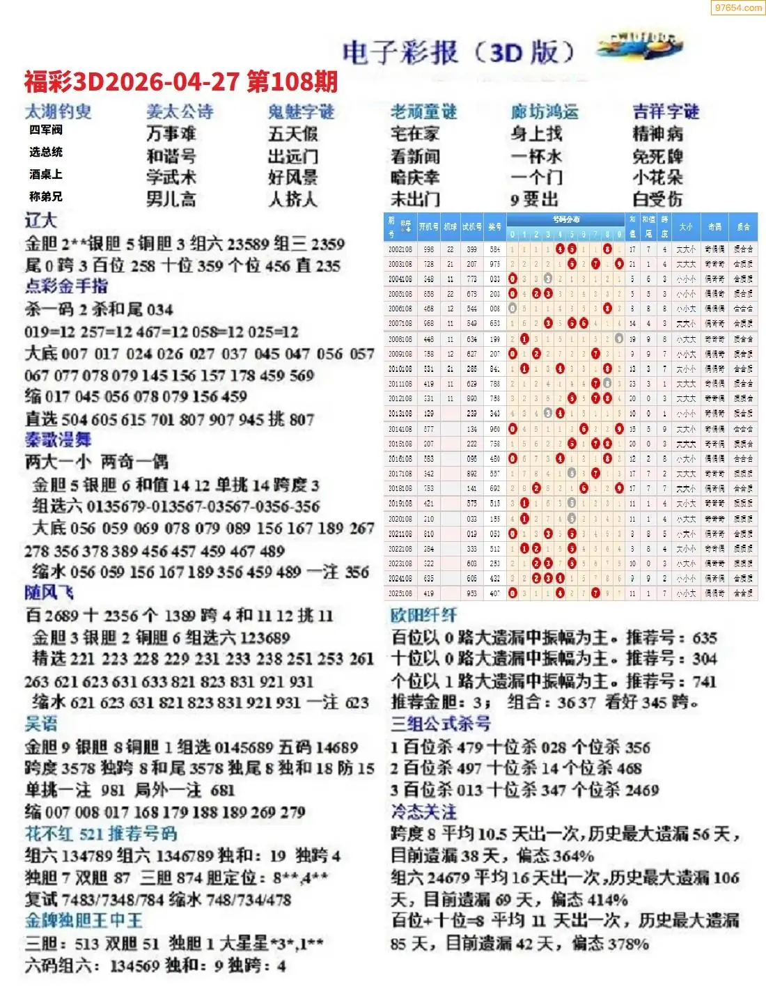(2)26年108期本期3d图迷汇总_福彩3D图谜总汇图