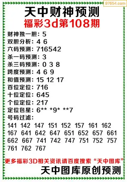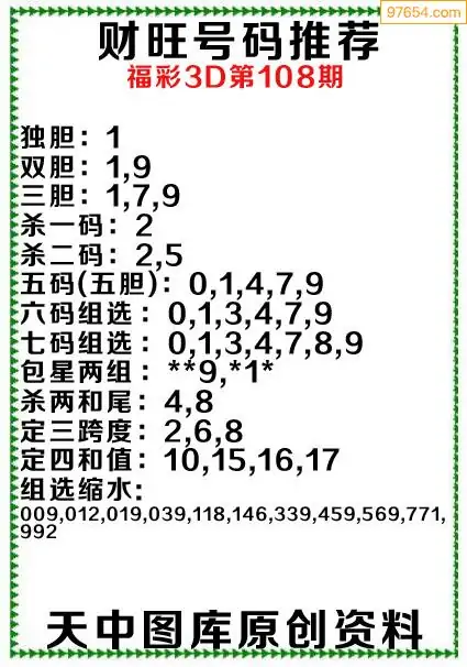 (3)2026108期3D预测总汇全图_福彩3d图谜字谜总汇