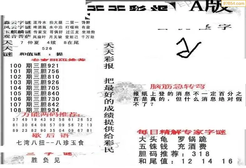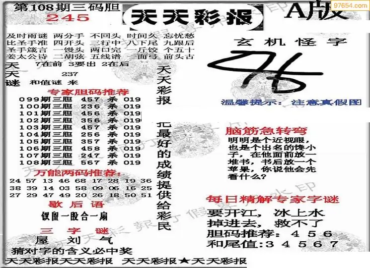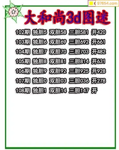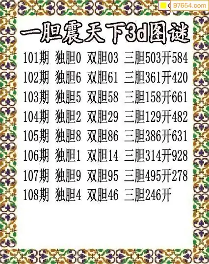 (3)2026107期3D预测总汇全图_福彩3d图谜字谜总汇