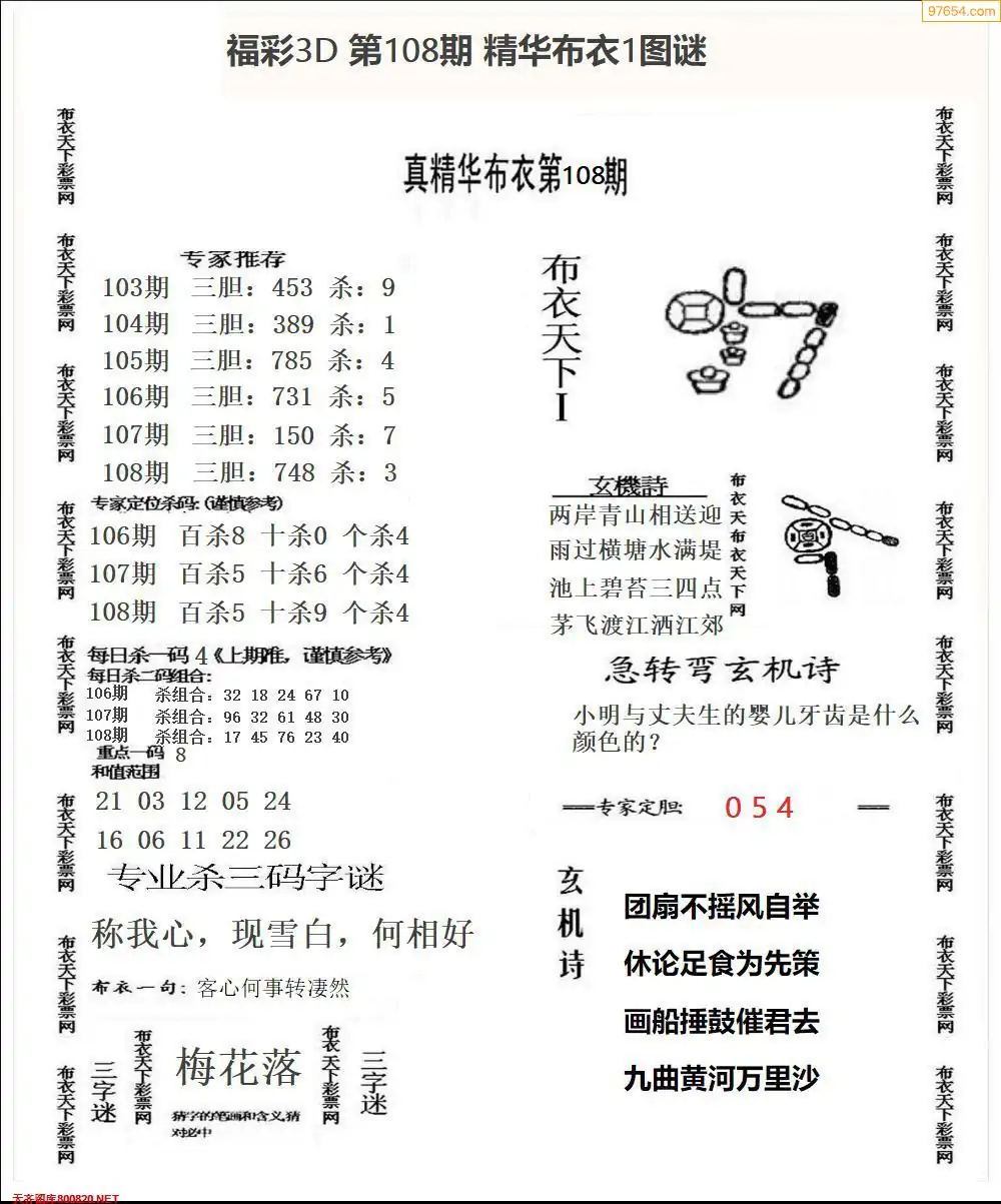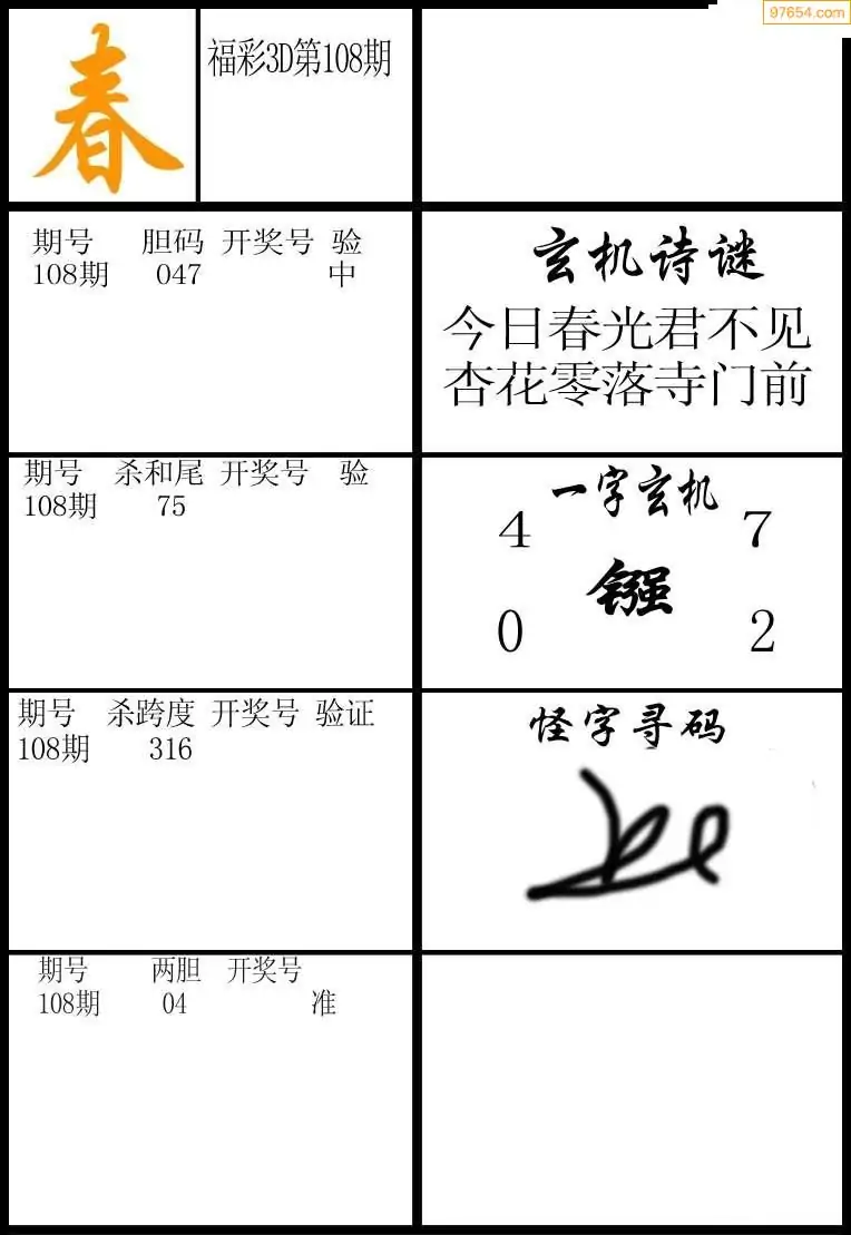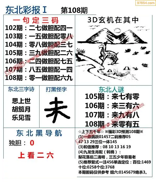(2)26年108期本期3d图迷汇总_福彩3D图谜总汇图