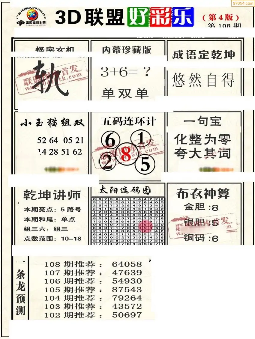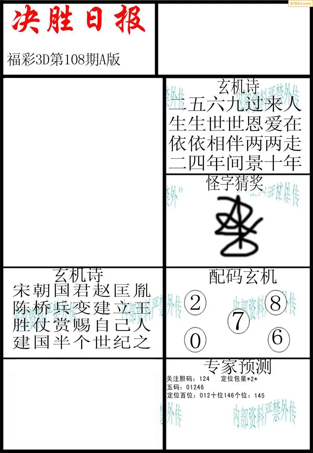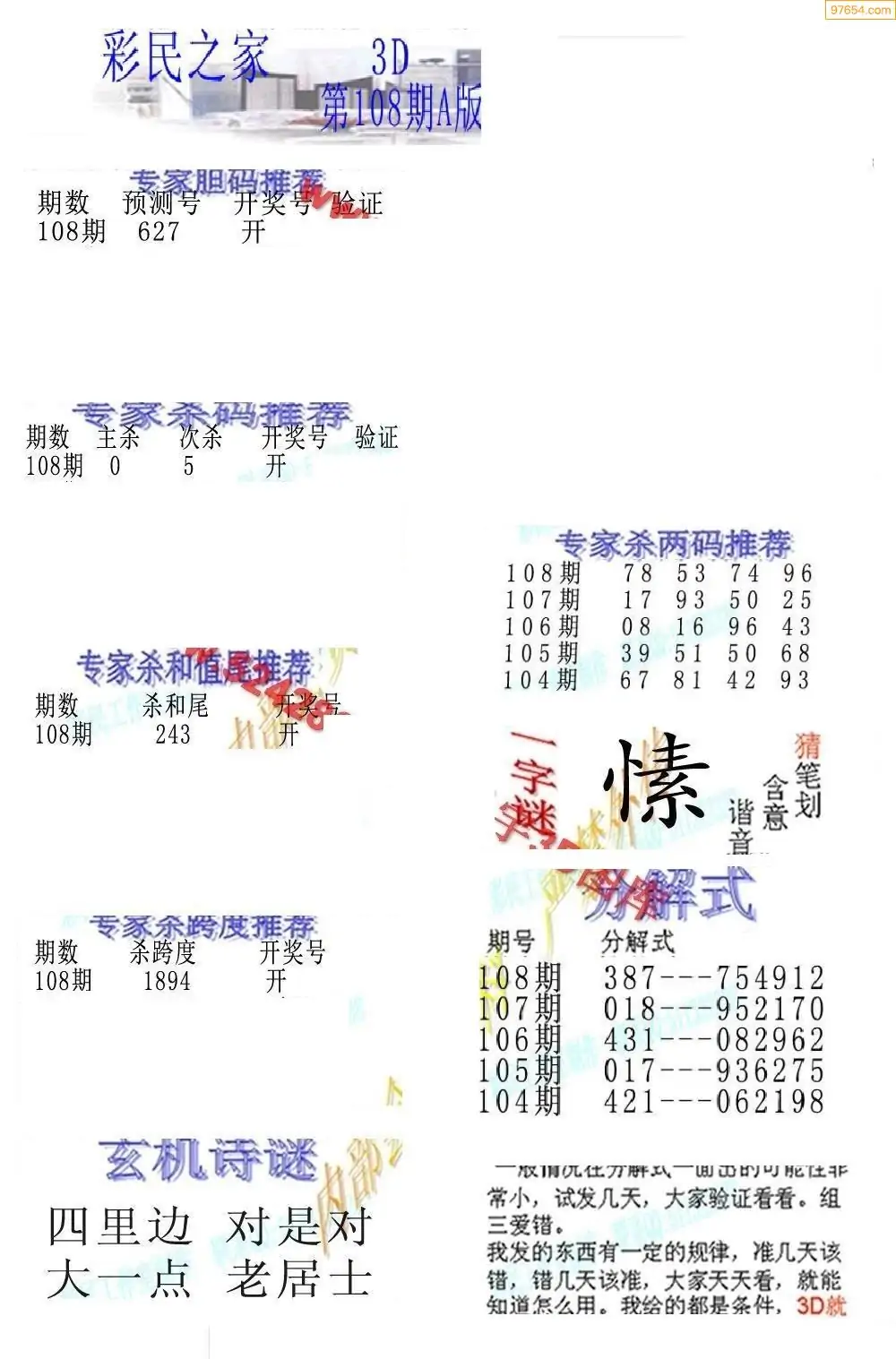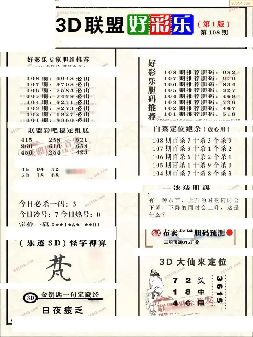 (3)2026108期3D预测总汇全图_福彩3d图谜字谜总汇