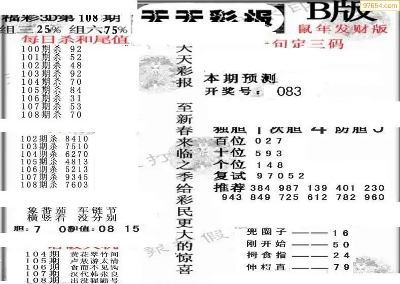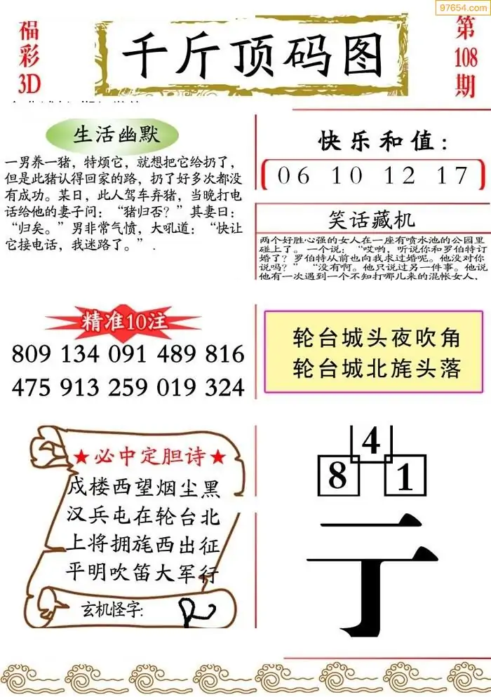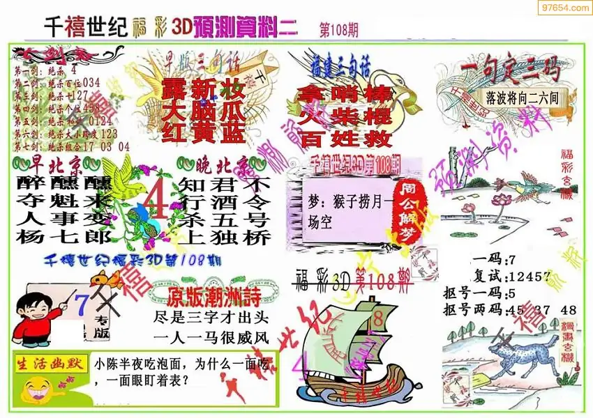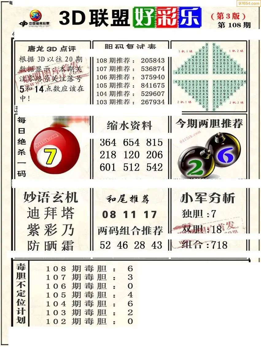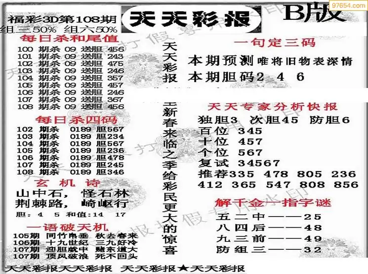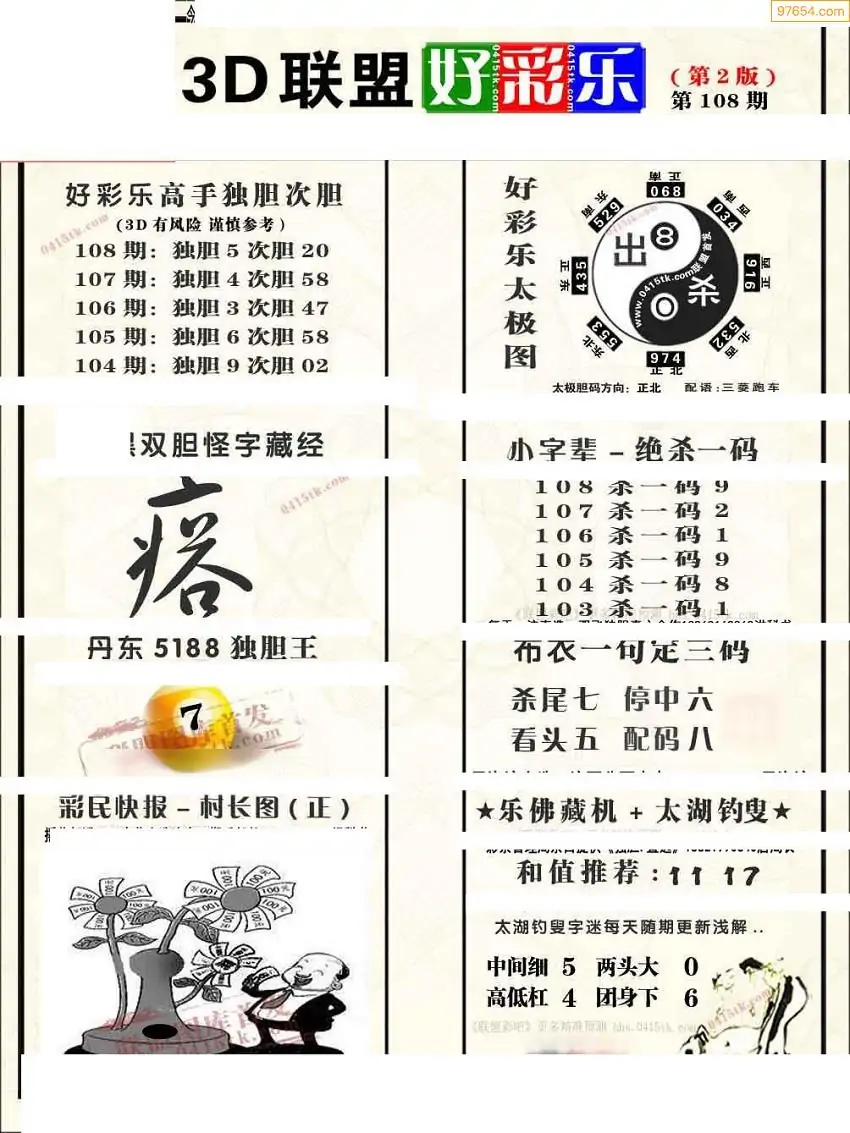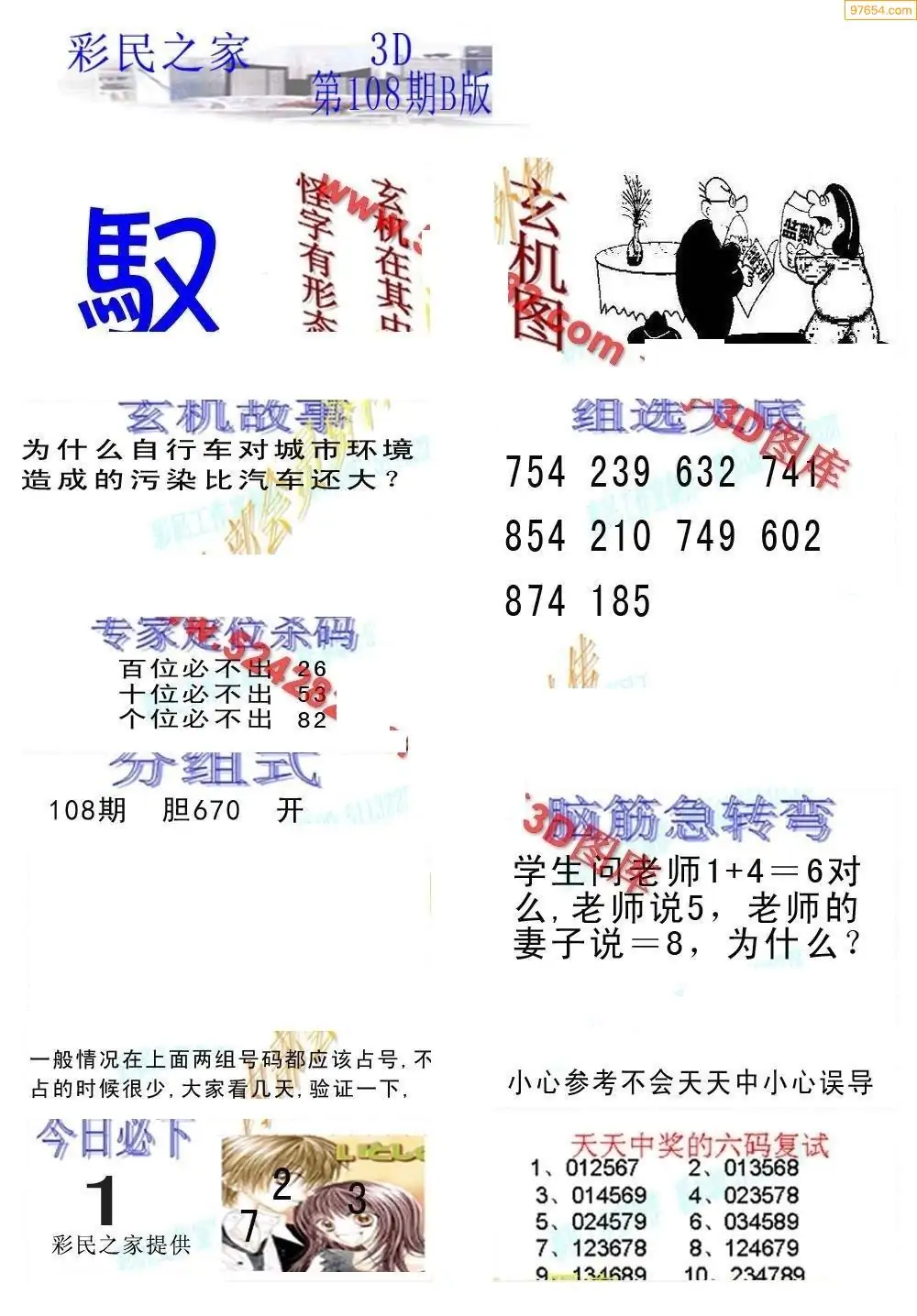 (3)2026108期3D预测总汇全图_福彩3d图谜字谜总汇