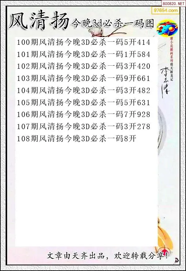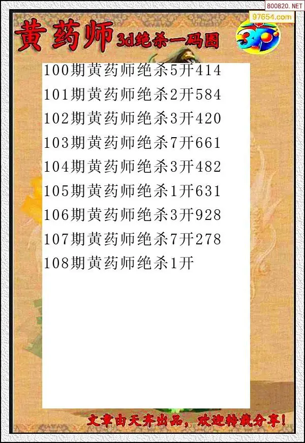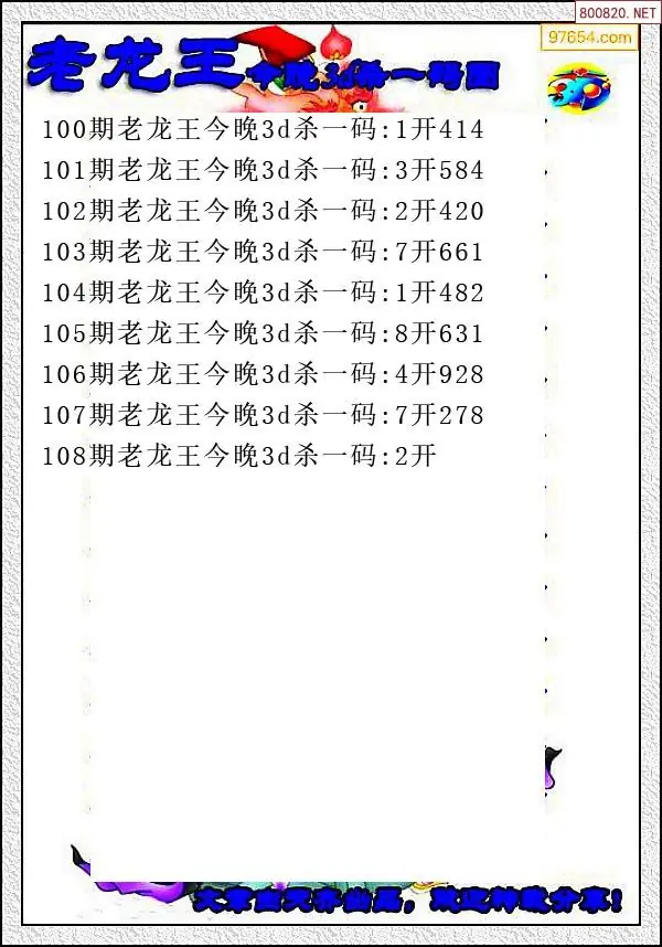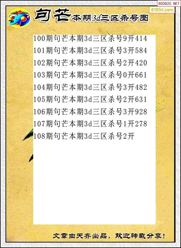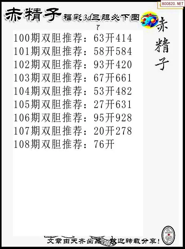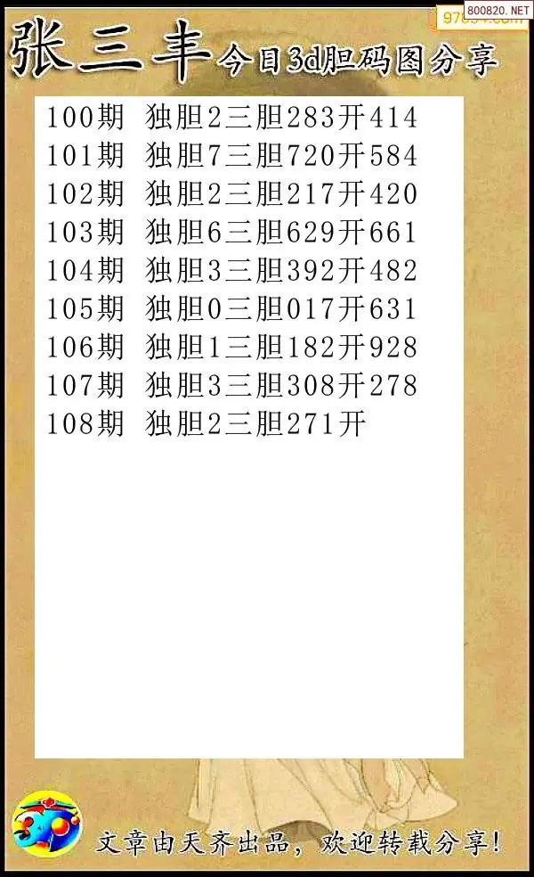 (8)26年108期今日3d各类彩报汇总