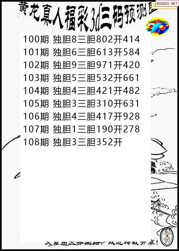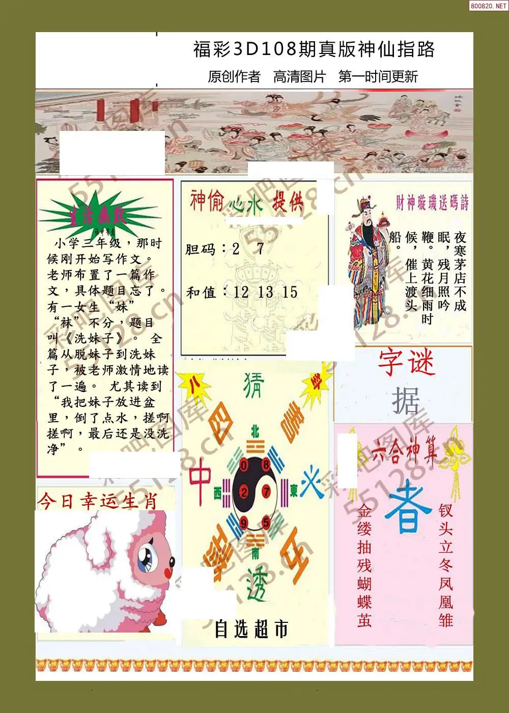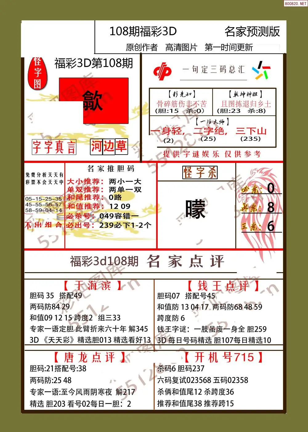 (3)2026108期3D预测总汇全图_福彩3d图谜字谜总汇