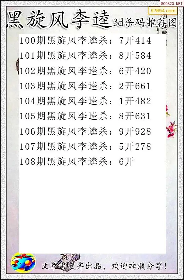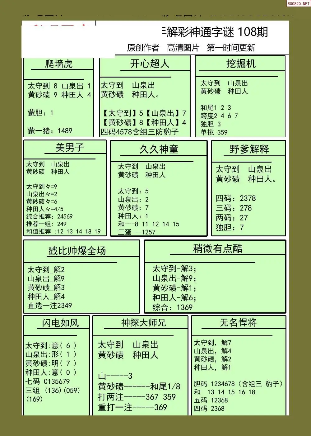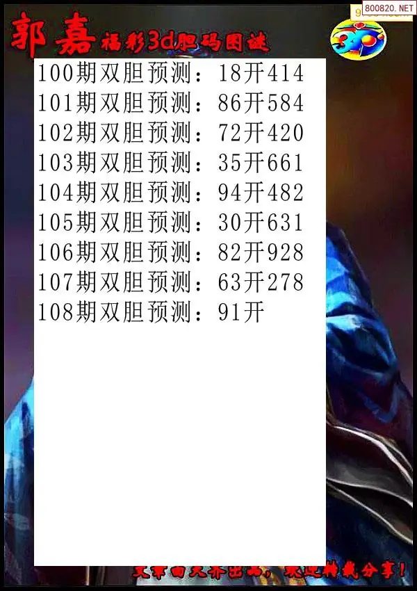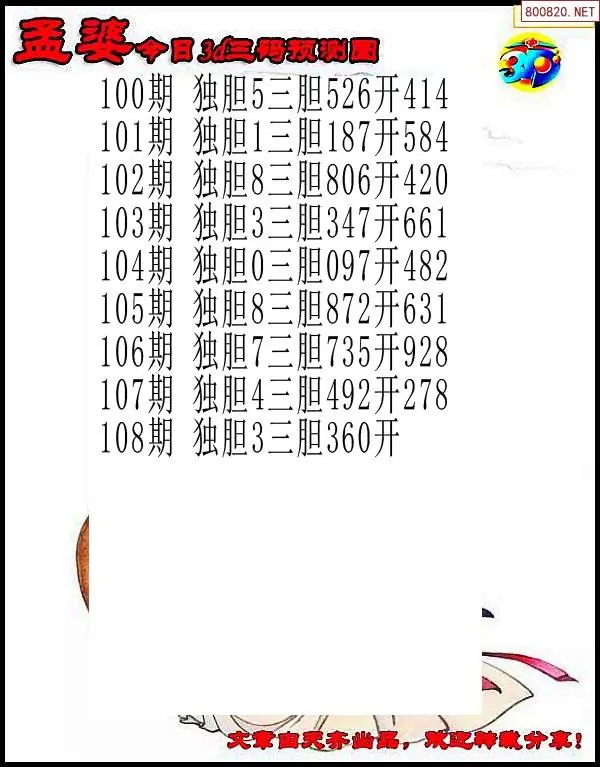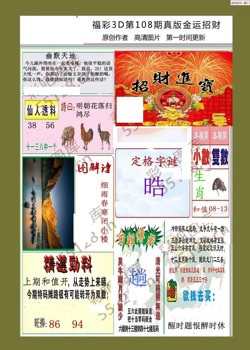 (3)2026108期3D预测总汇全图_福彩3d图谜字谜总汇