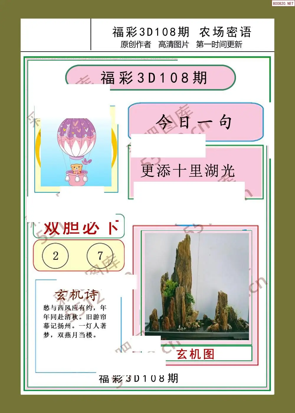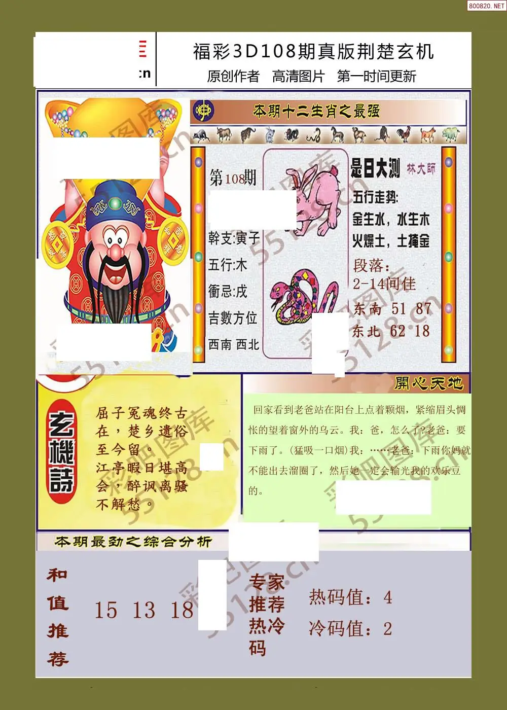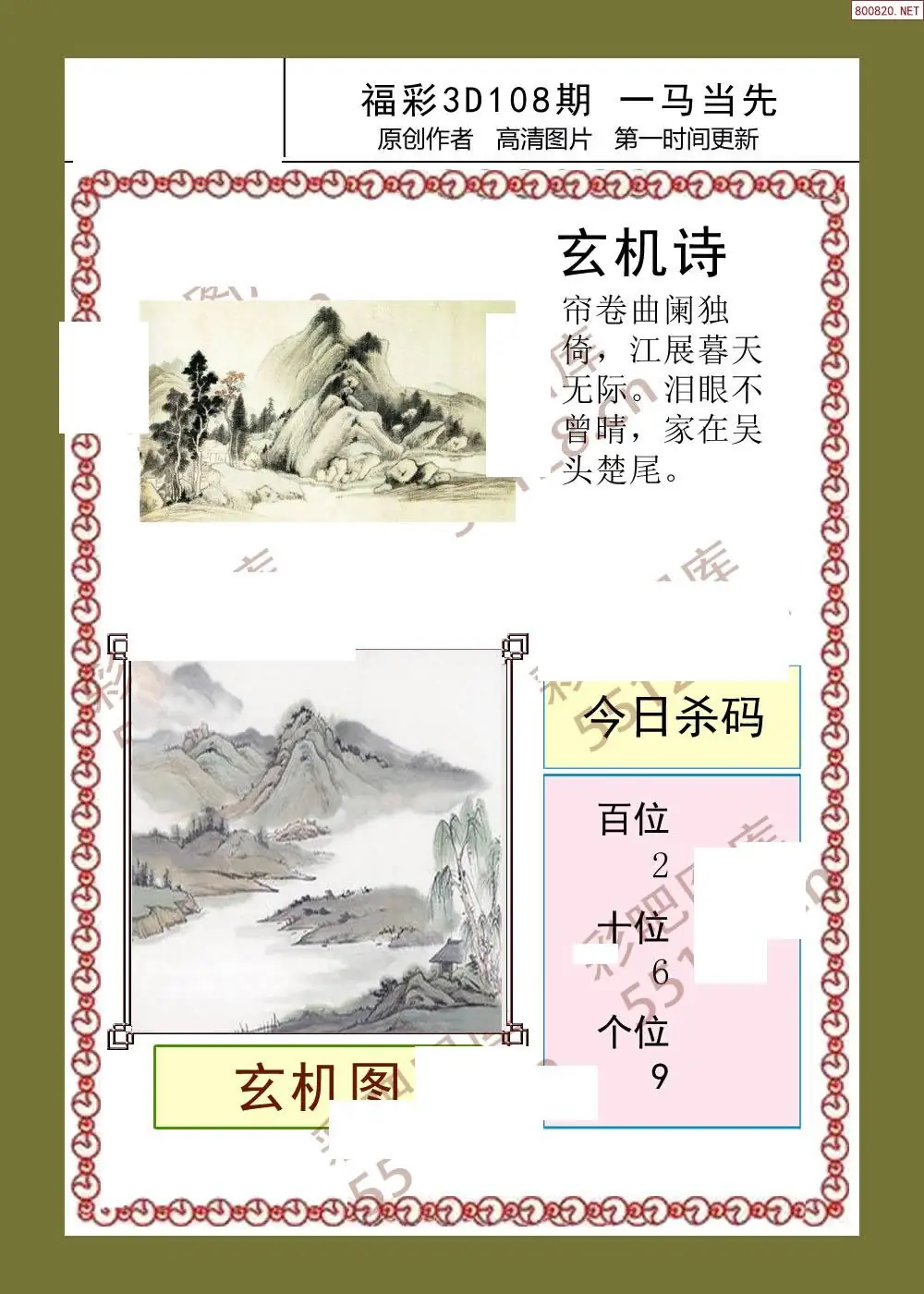 (2)26年108期本期3d图迷汇总_福彩3D图谜总汇图