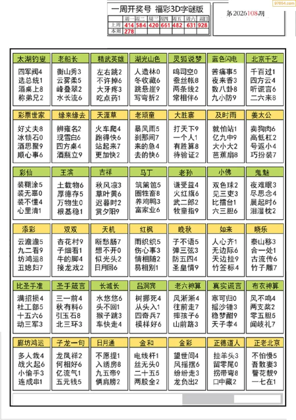 26年108期3d选号彩报图谜画谜