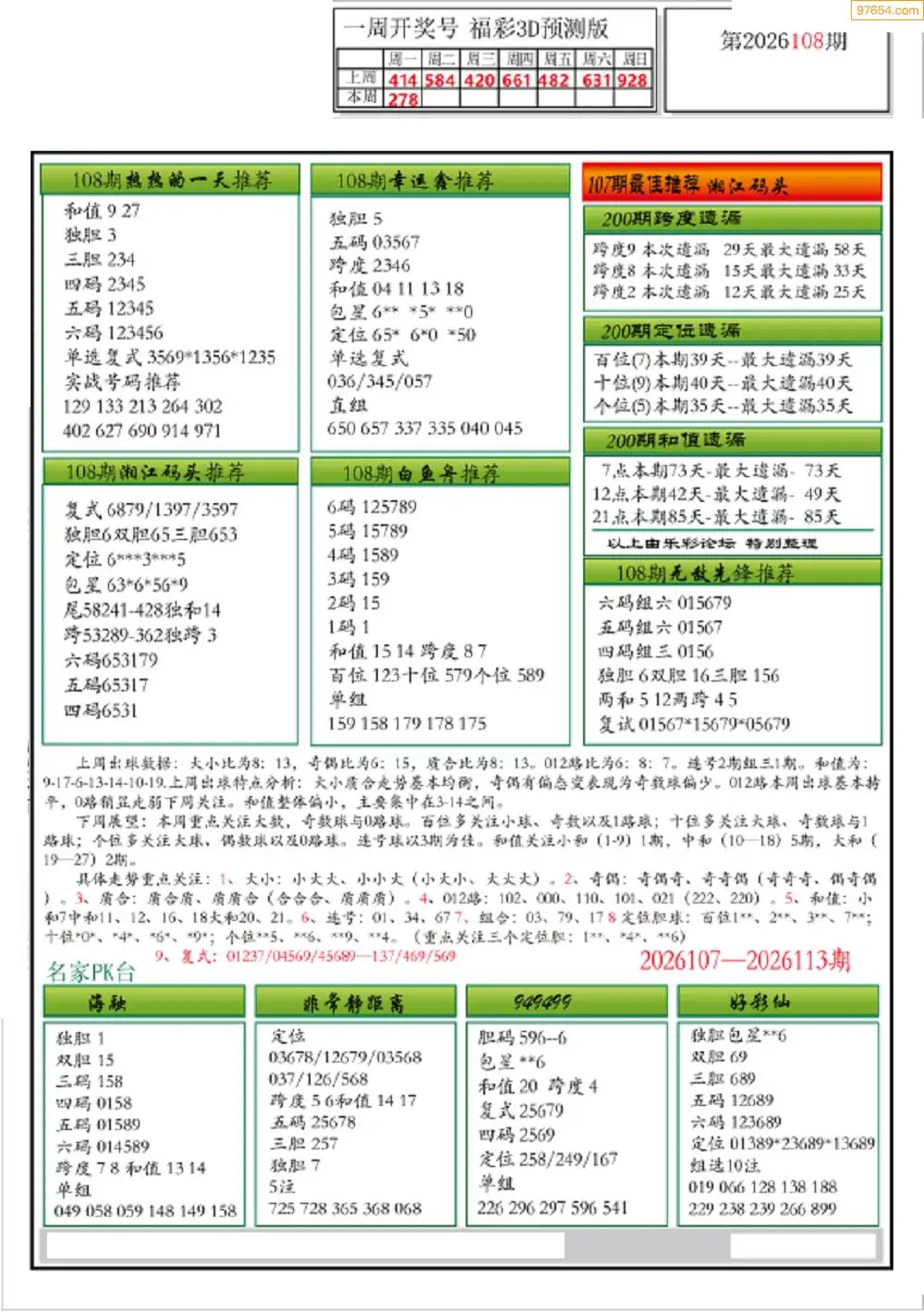 2026年108期电子彩报专家分析