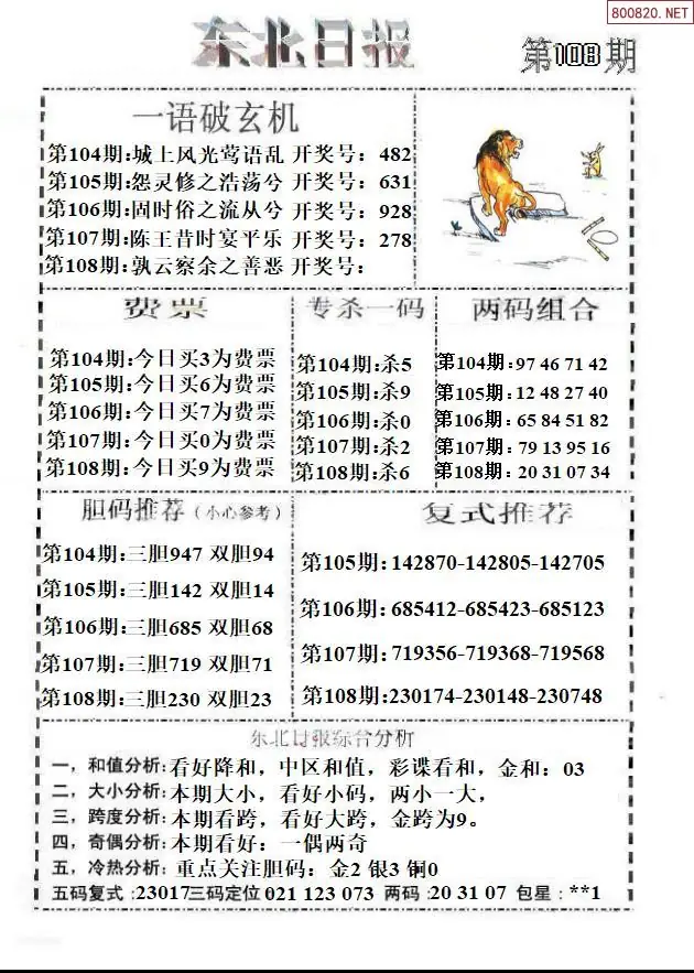 26108期今日3d三毛四版+东盛会员报