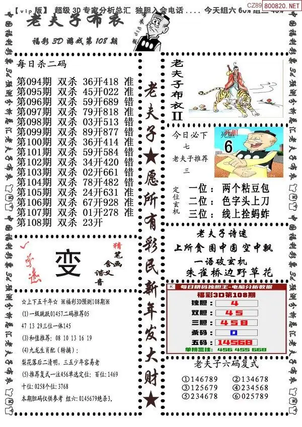 福彩3D108期天牛彩吧套图整合总汇