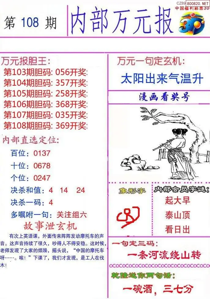 26年108期3d选号彩报图谜画谜