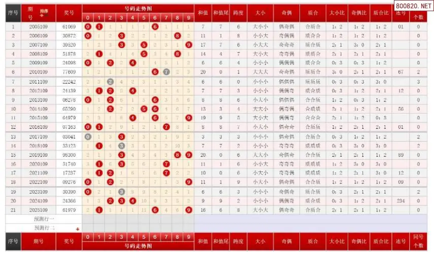 109期排列三历史号码对比图+数据走势分析