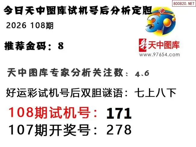 福彩3D108期布衣皇帝试机号后预测
