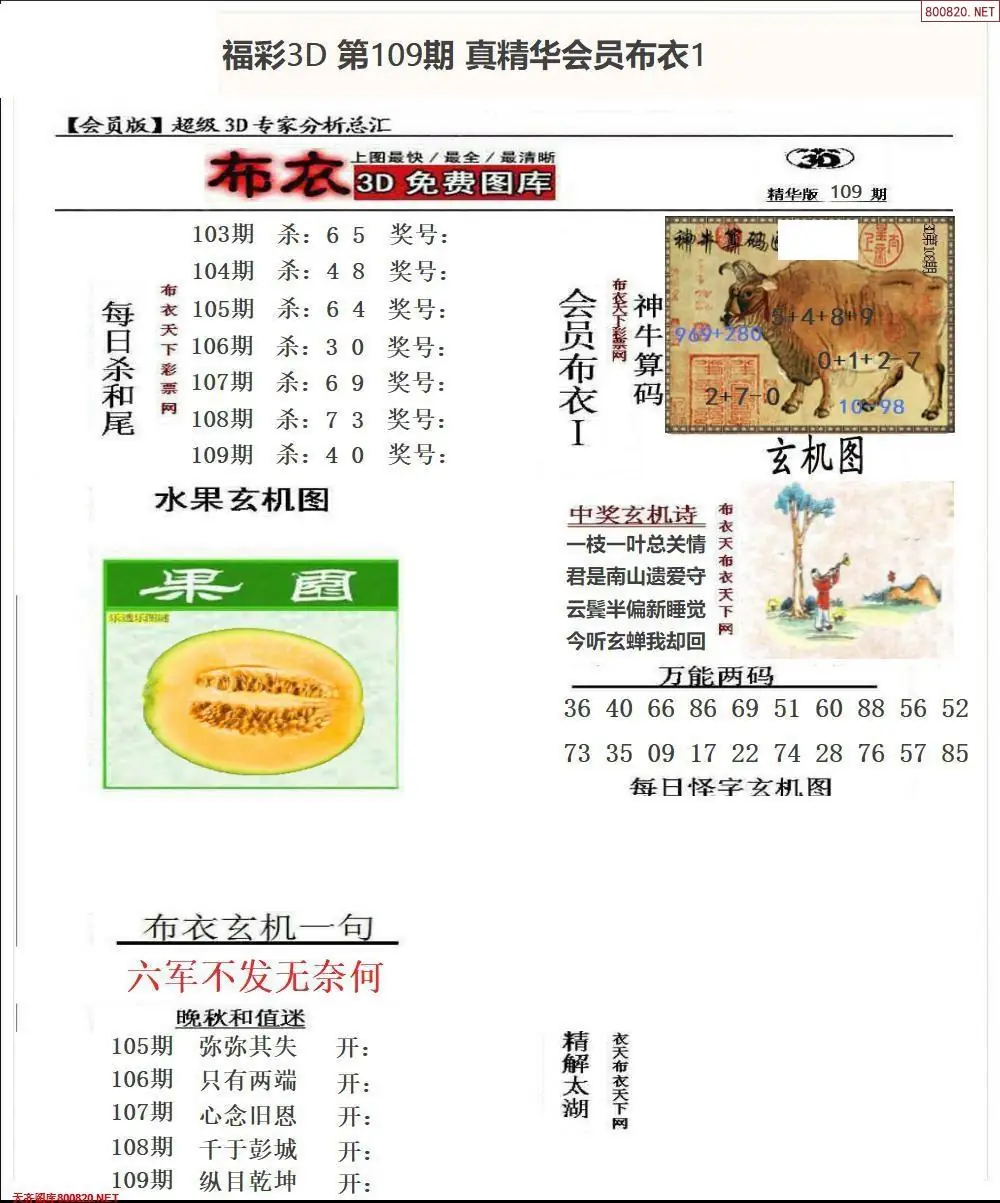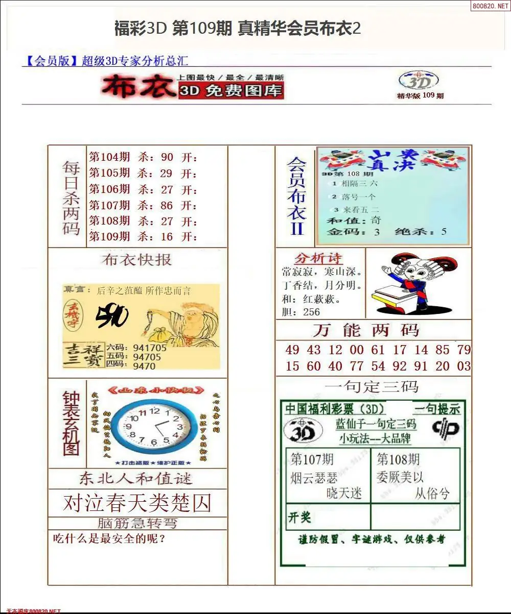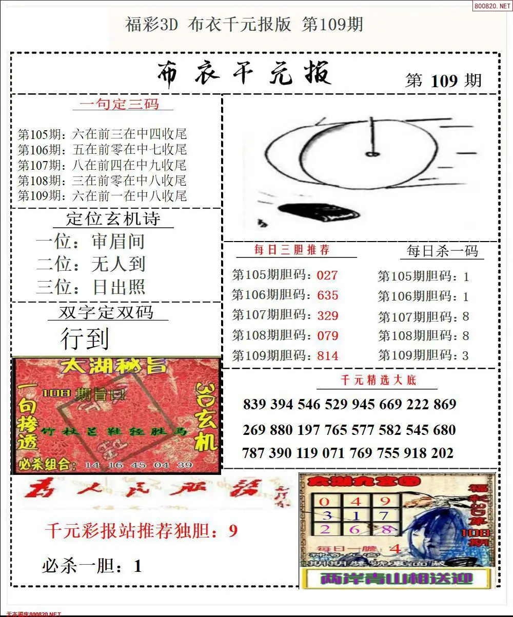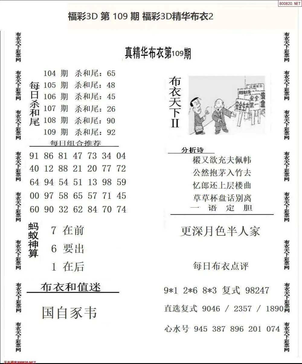 福彩109期3d真精华布衣+布衣早报(转载)