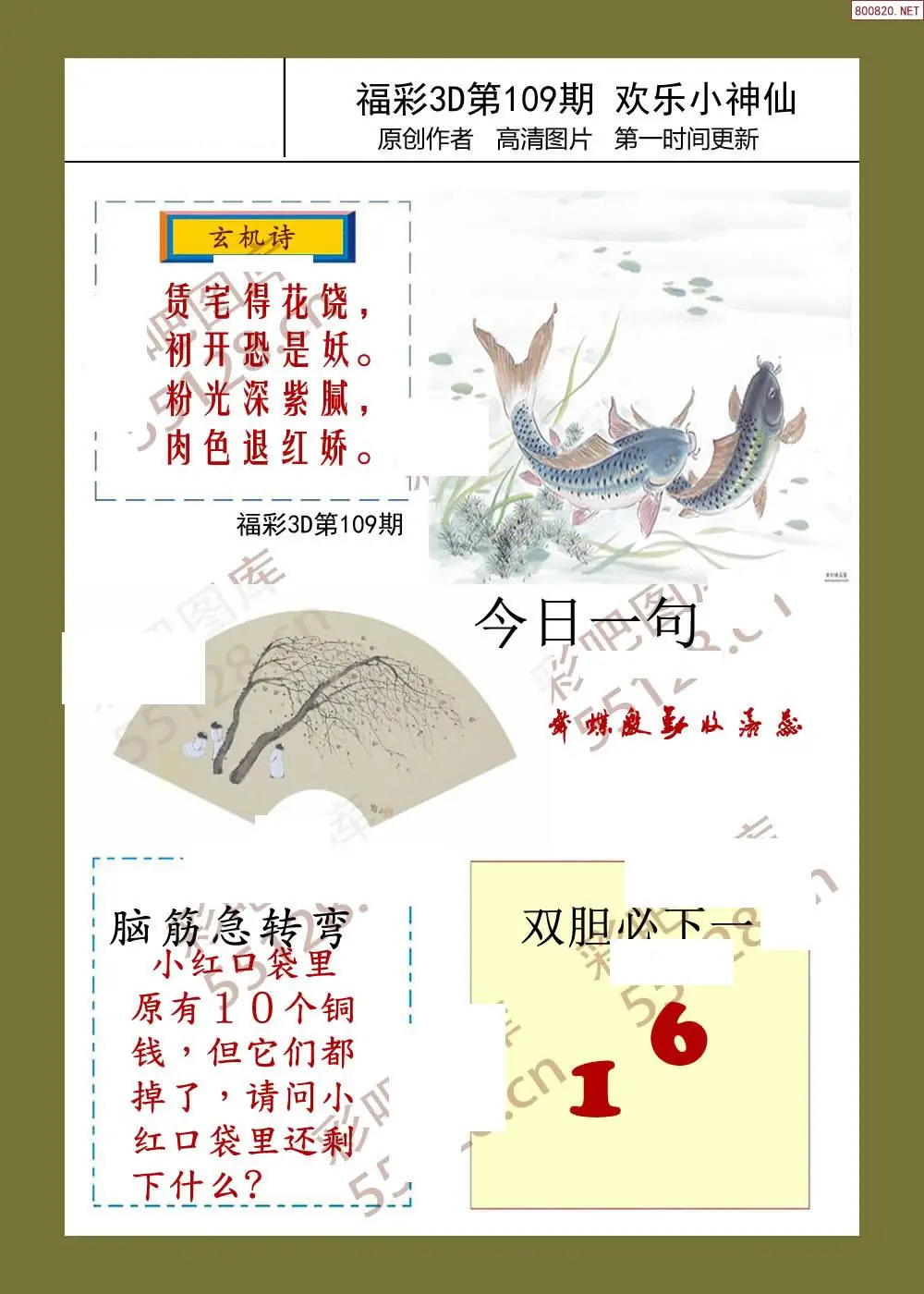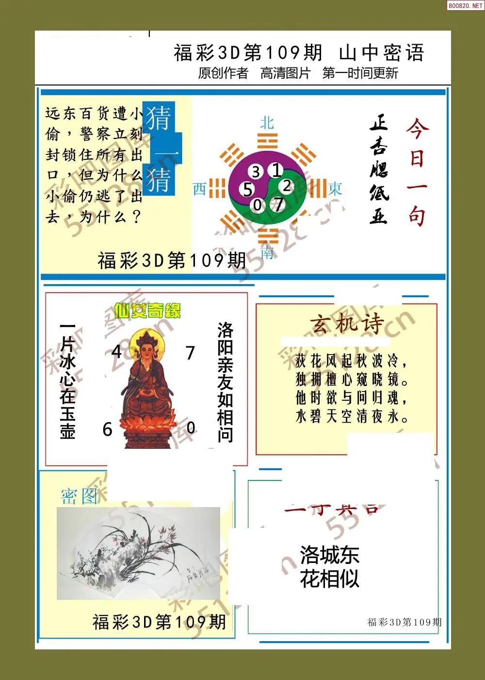 福彩3D26109期蓝仙子一句定三码图谜