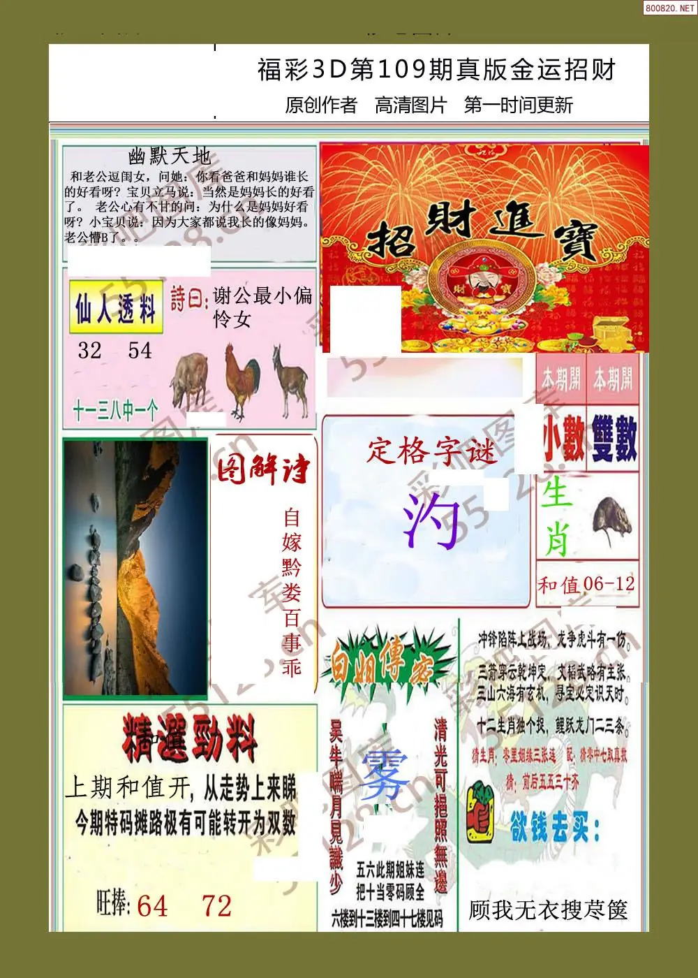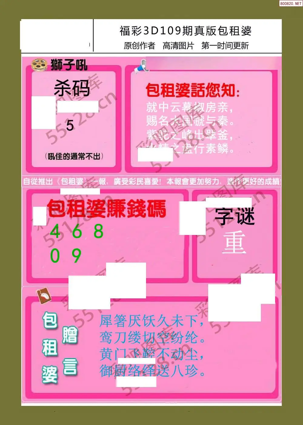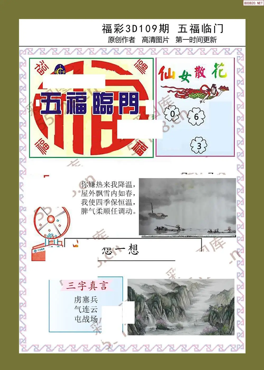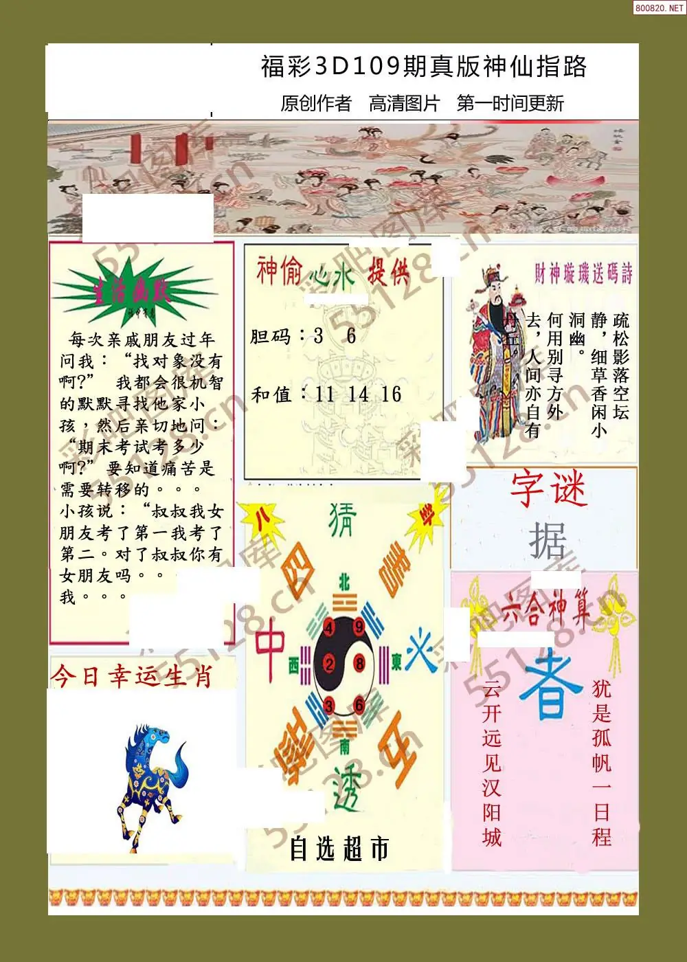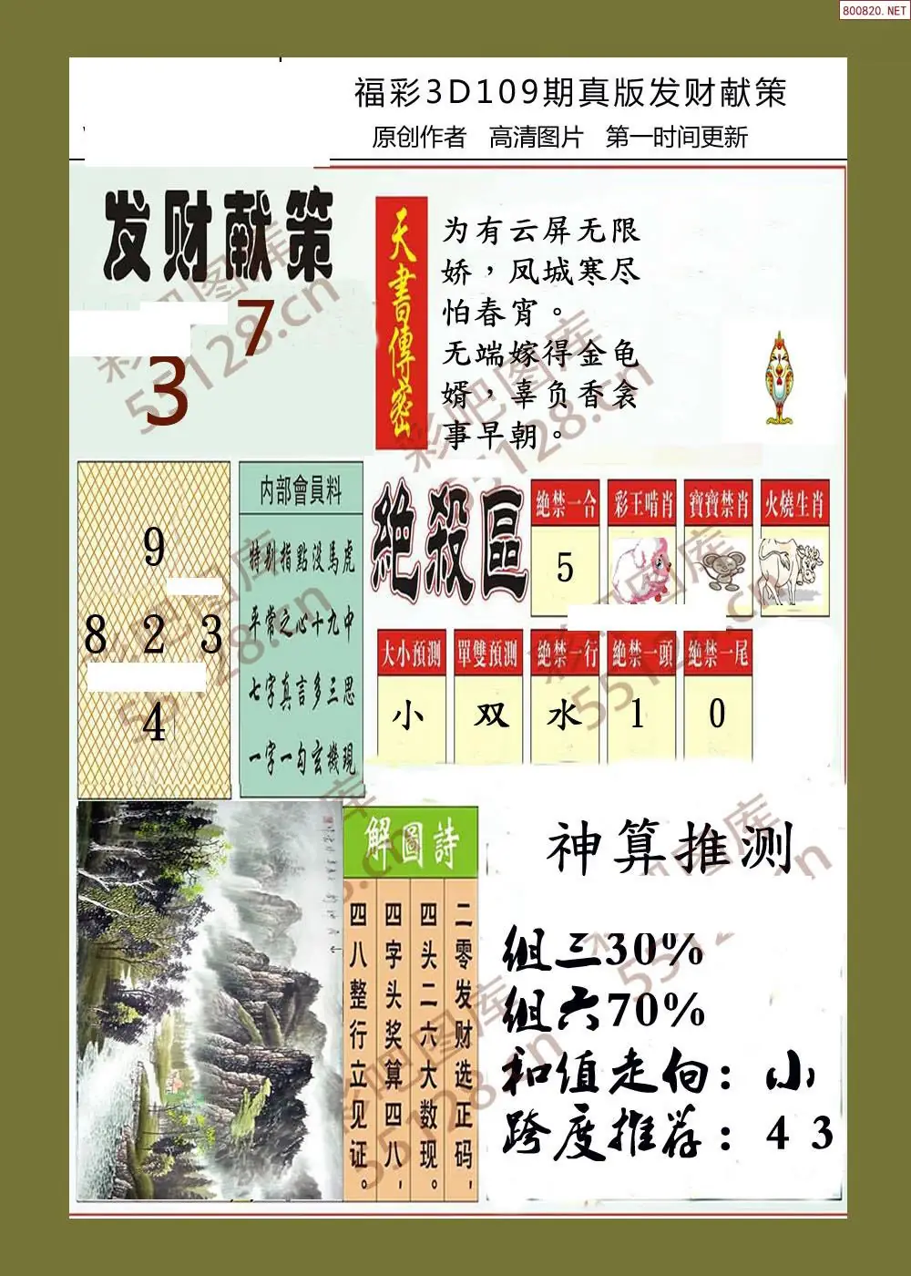 福彩3D109期天牛彩吧套图整合总汇
