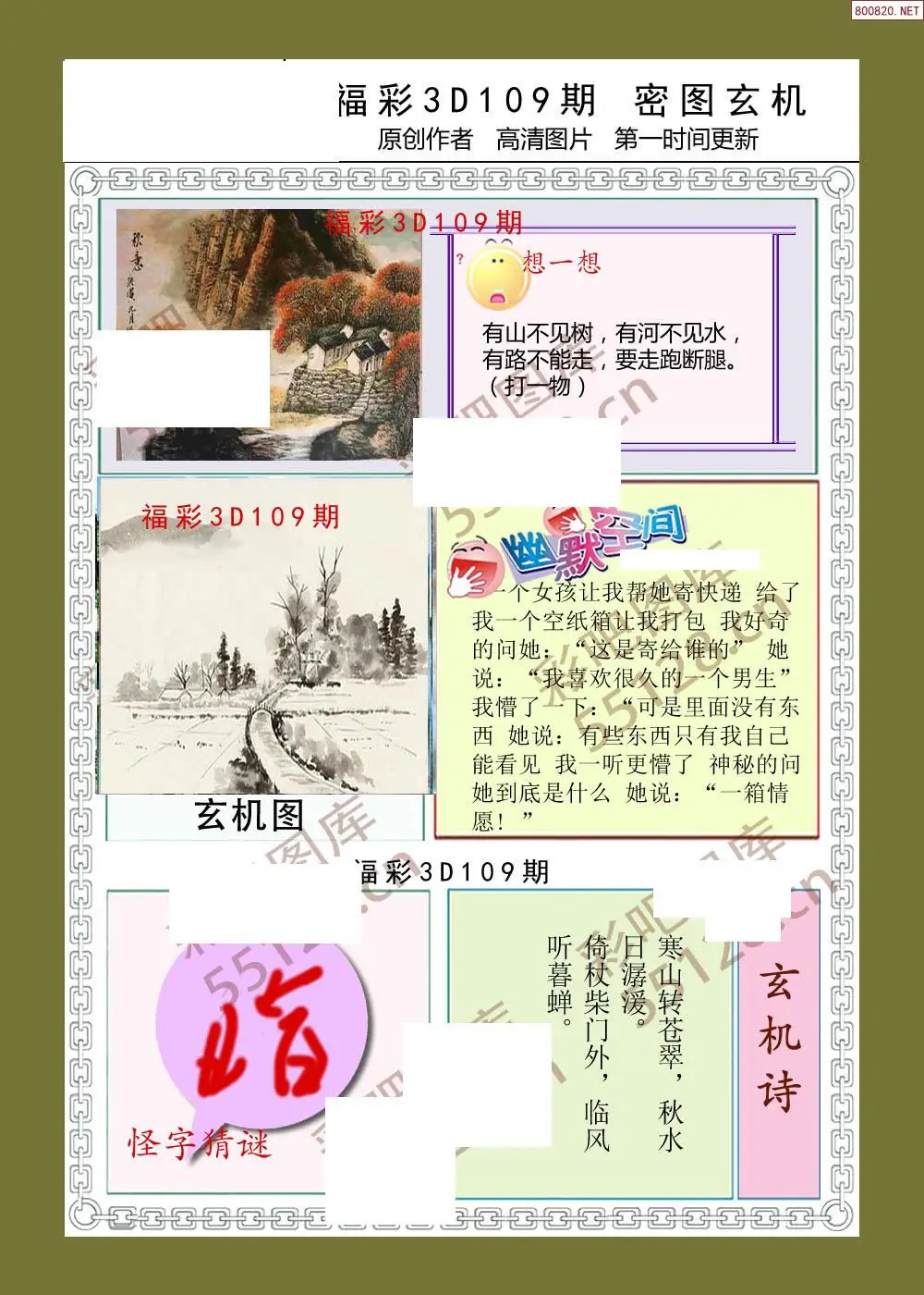 109期福彩天机壁怪字图