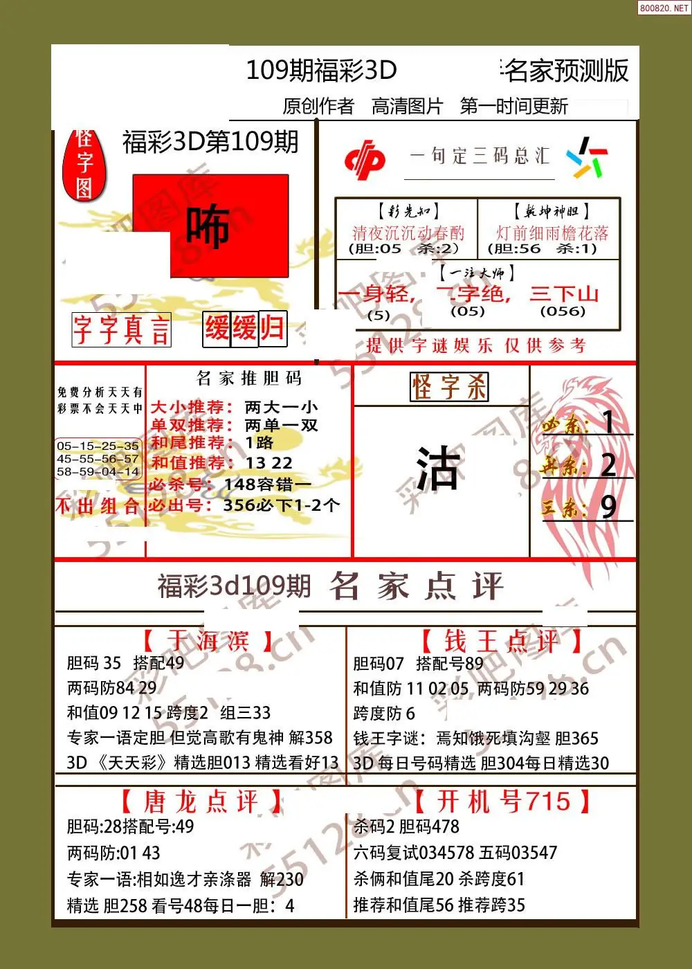 26年109期3D各板块资料整合汇总