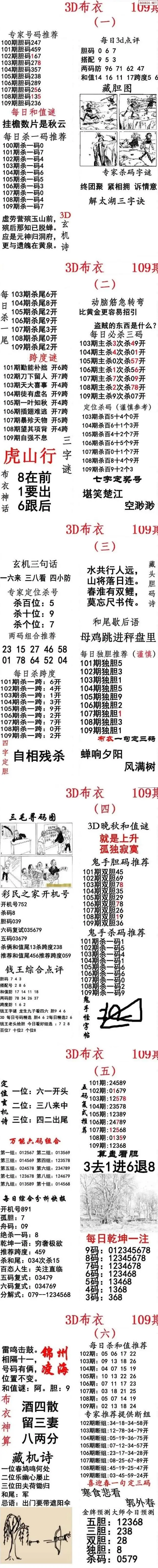 福彩109期3d真精华布衣+布衣早报(转载)