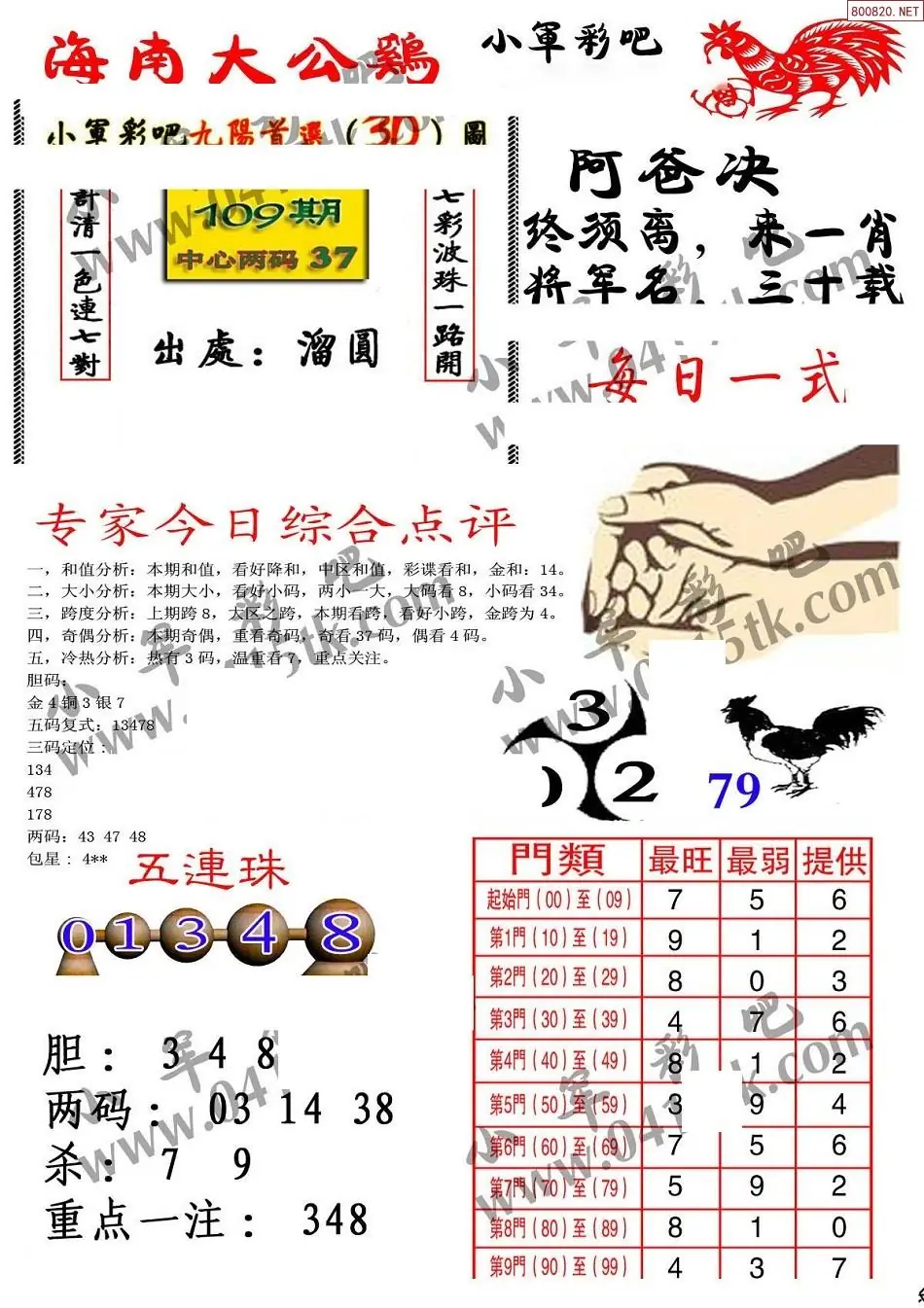 福彩3D109期天牛彩吧套图整合总汇