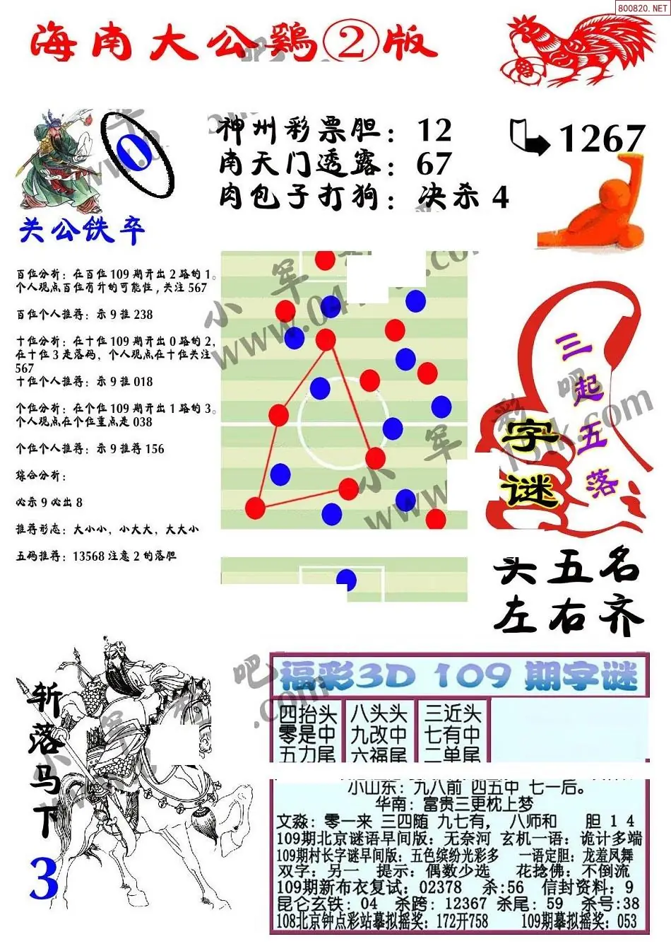 26109期海南大公鸡福彩图谜