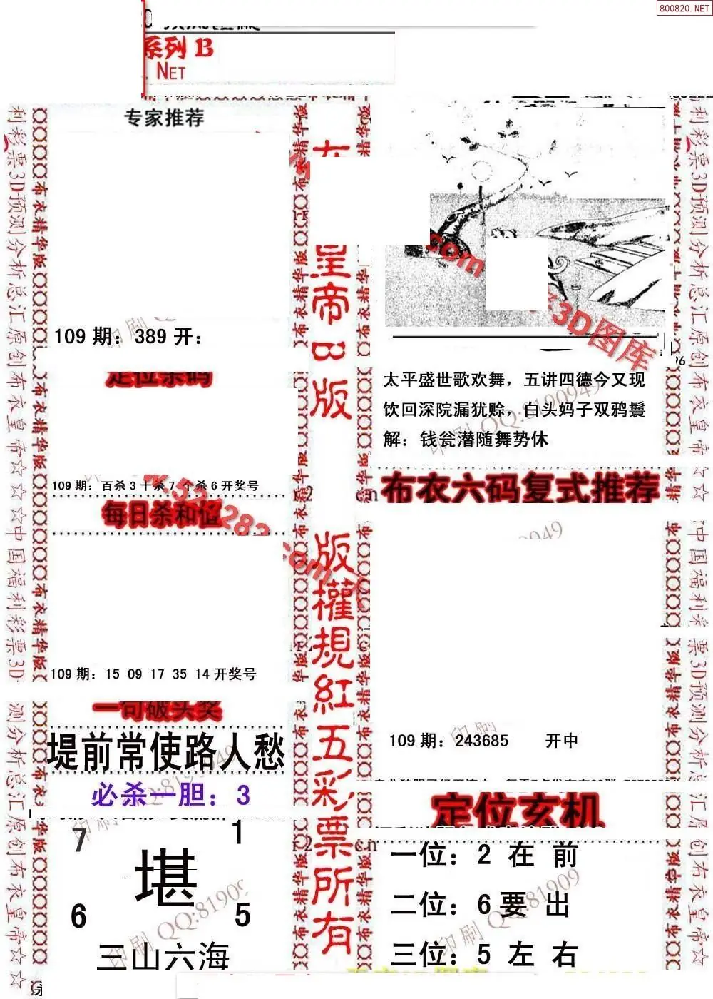 福彩109期3d真精华布衣+布衣早报(转载)