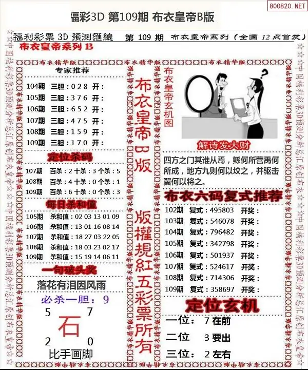 26108期3d新布衣皇帝早间四版