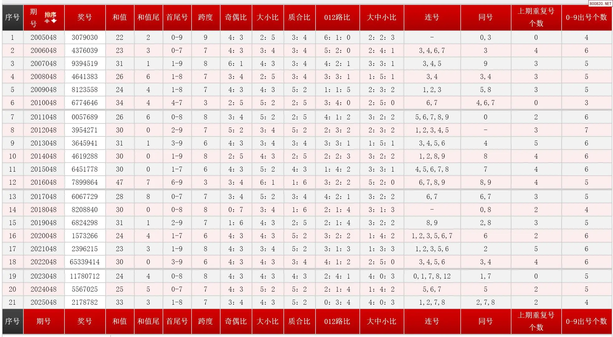 048期七星彩历史同期图表+走势图