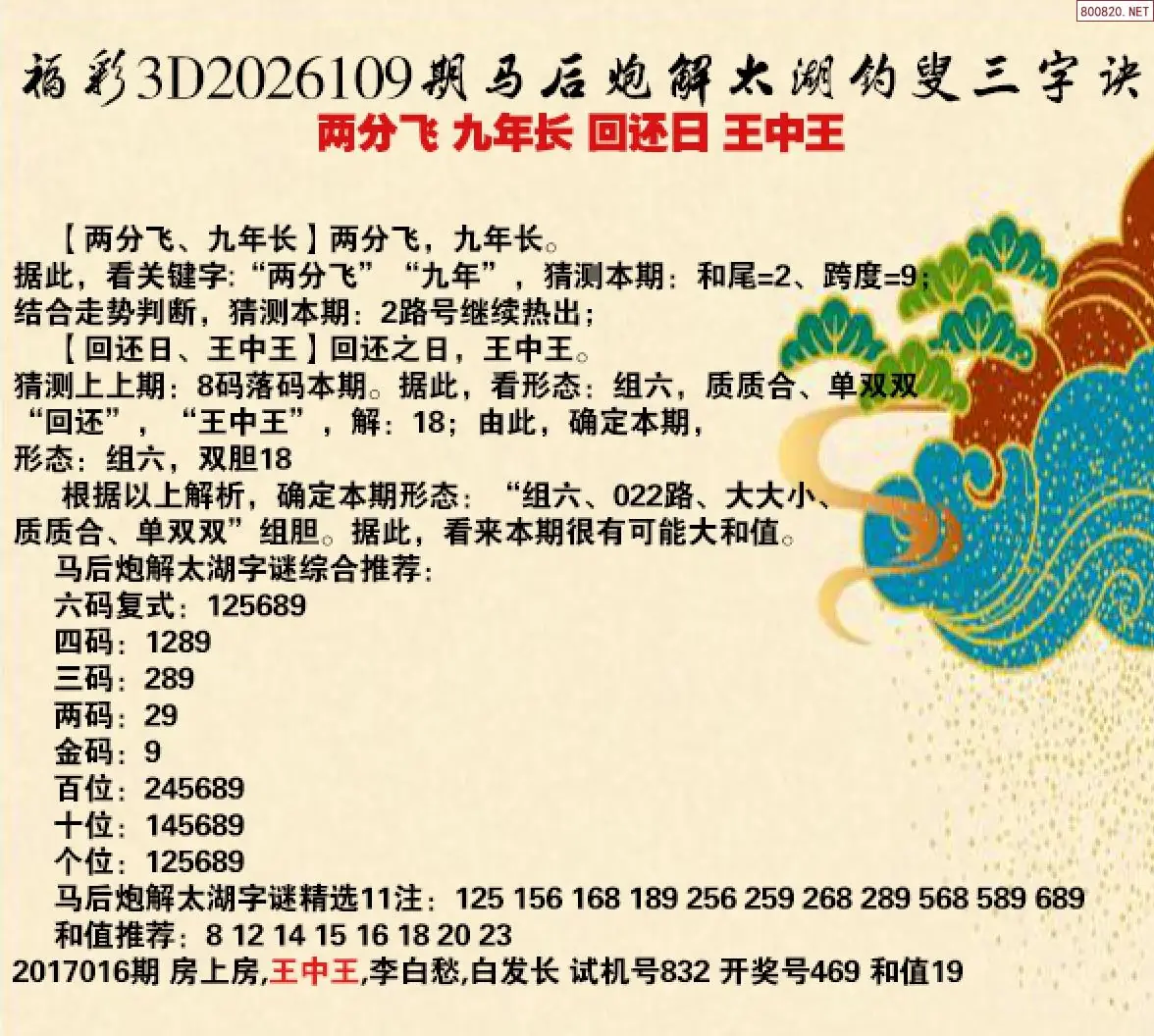 26109期福彩3d太湖钓叟三字诀历史汇总
