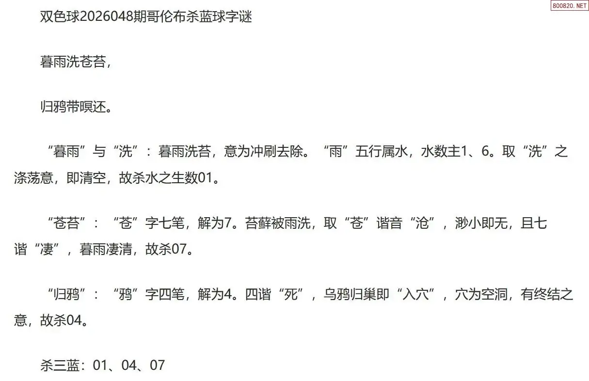哥伦布双色球26年048期一句杀蓝球字迷