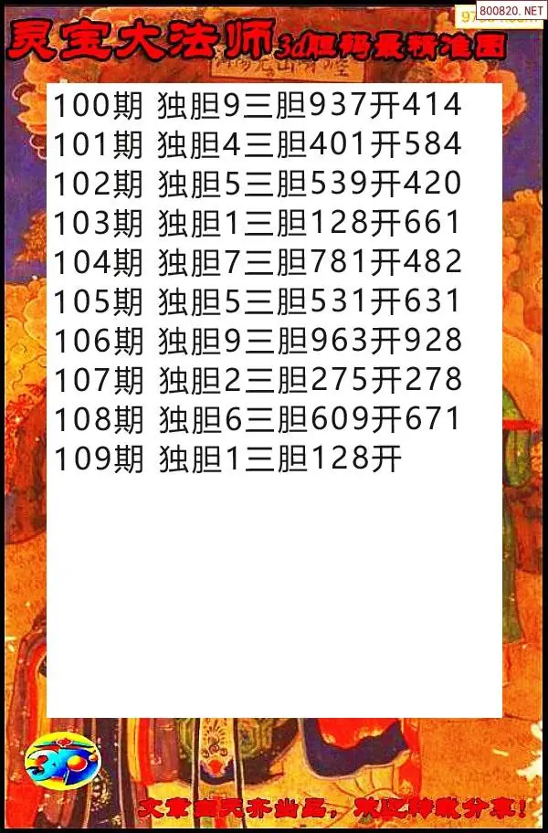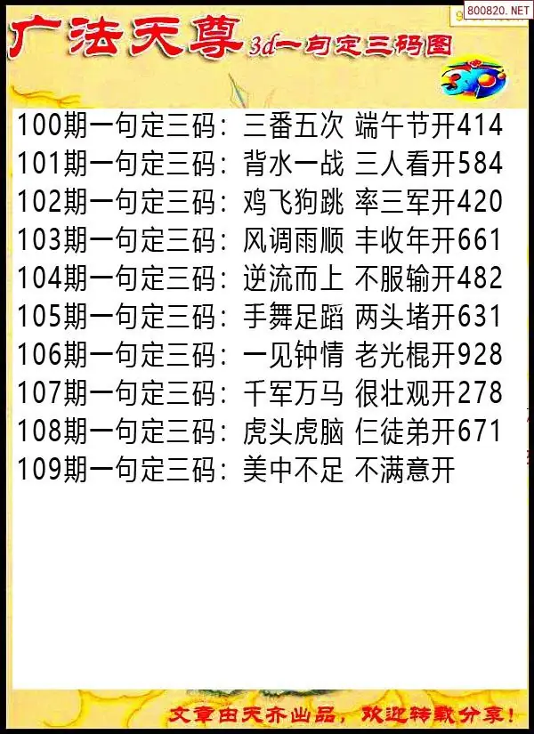 天齐网3d26年109期胆码图 胆:87