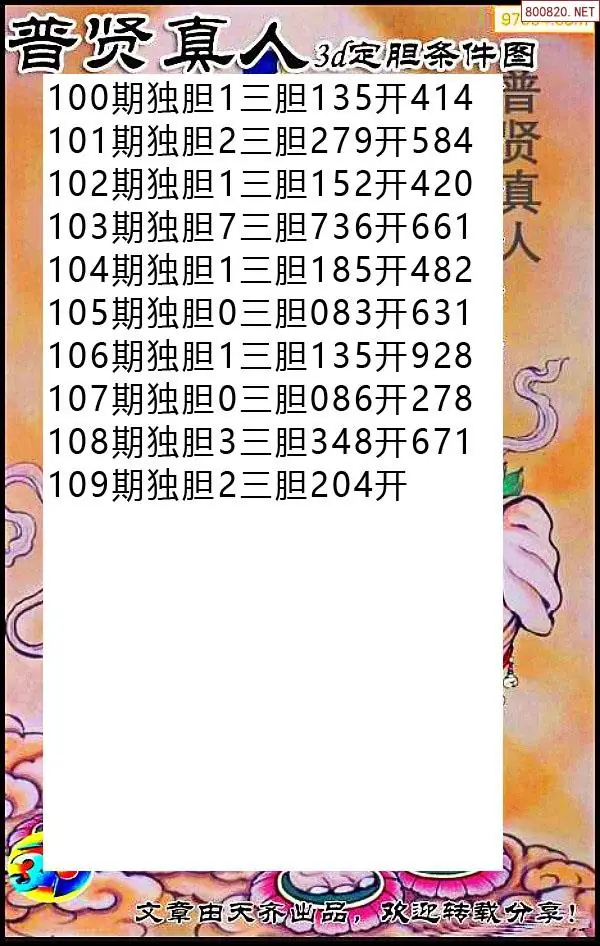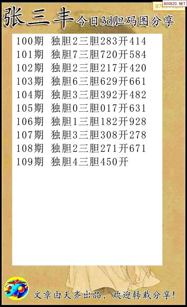 2026109期彩彩网3d原创图迷搜集(天中整理)