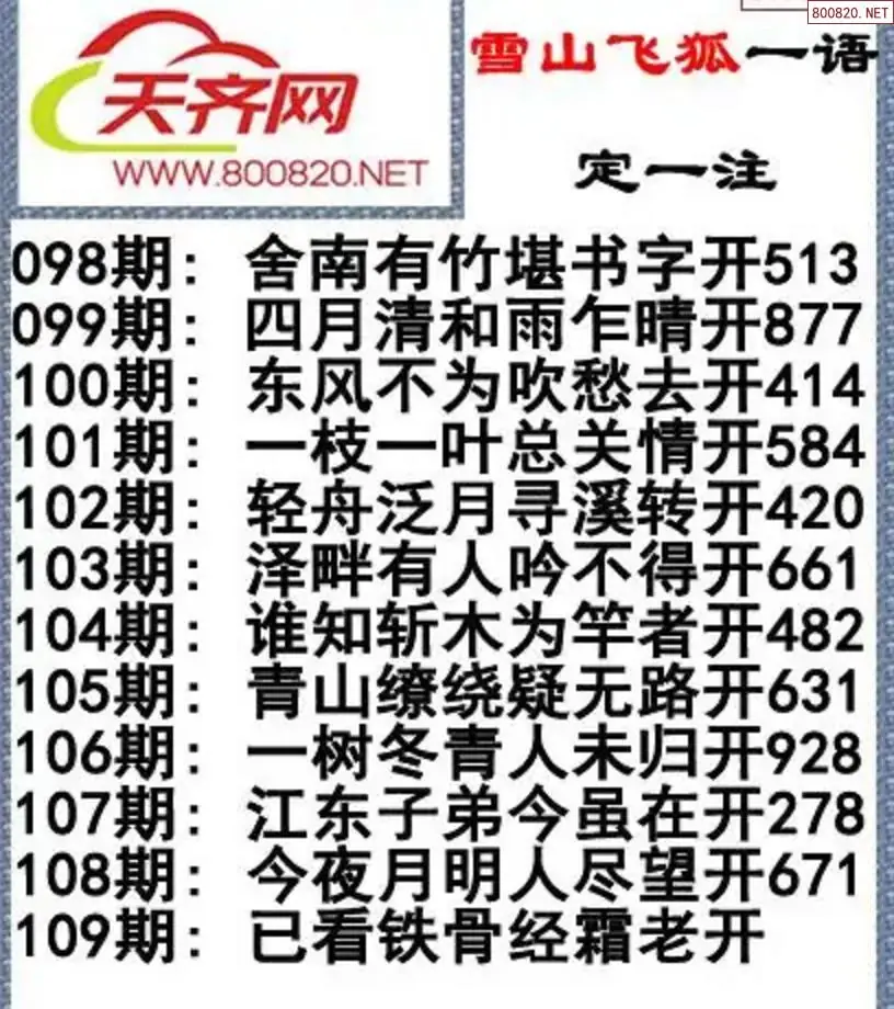 彩票3d字谜109期雪山飞狐一语定一注