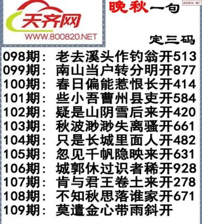 109期3D晚秋(和值)谜:就是上升 D:孤独寂寞