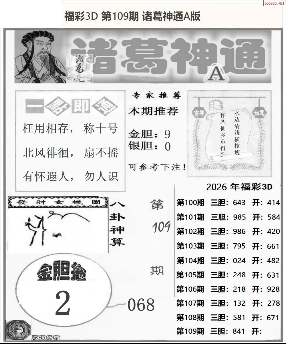 26109期福彩3D诸葛神通a