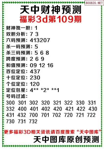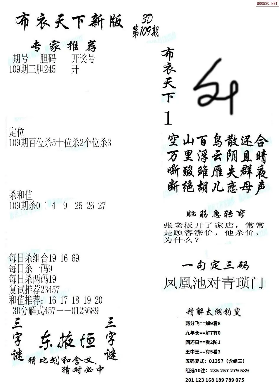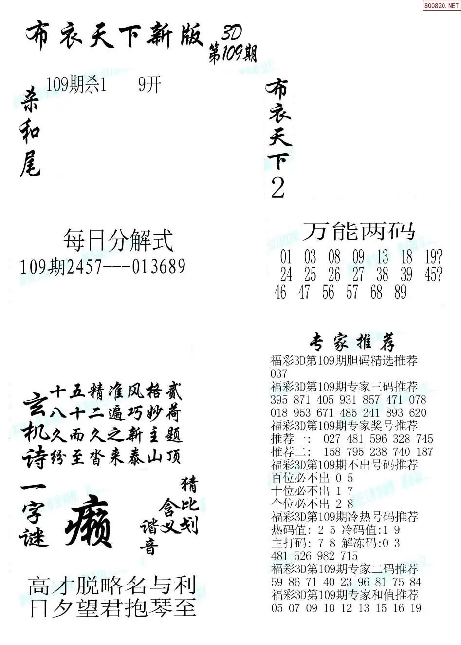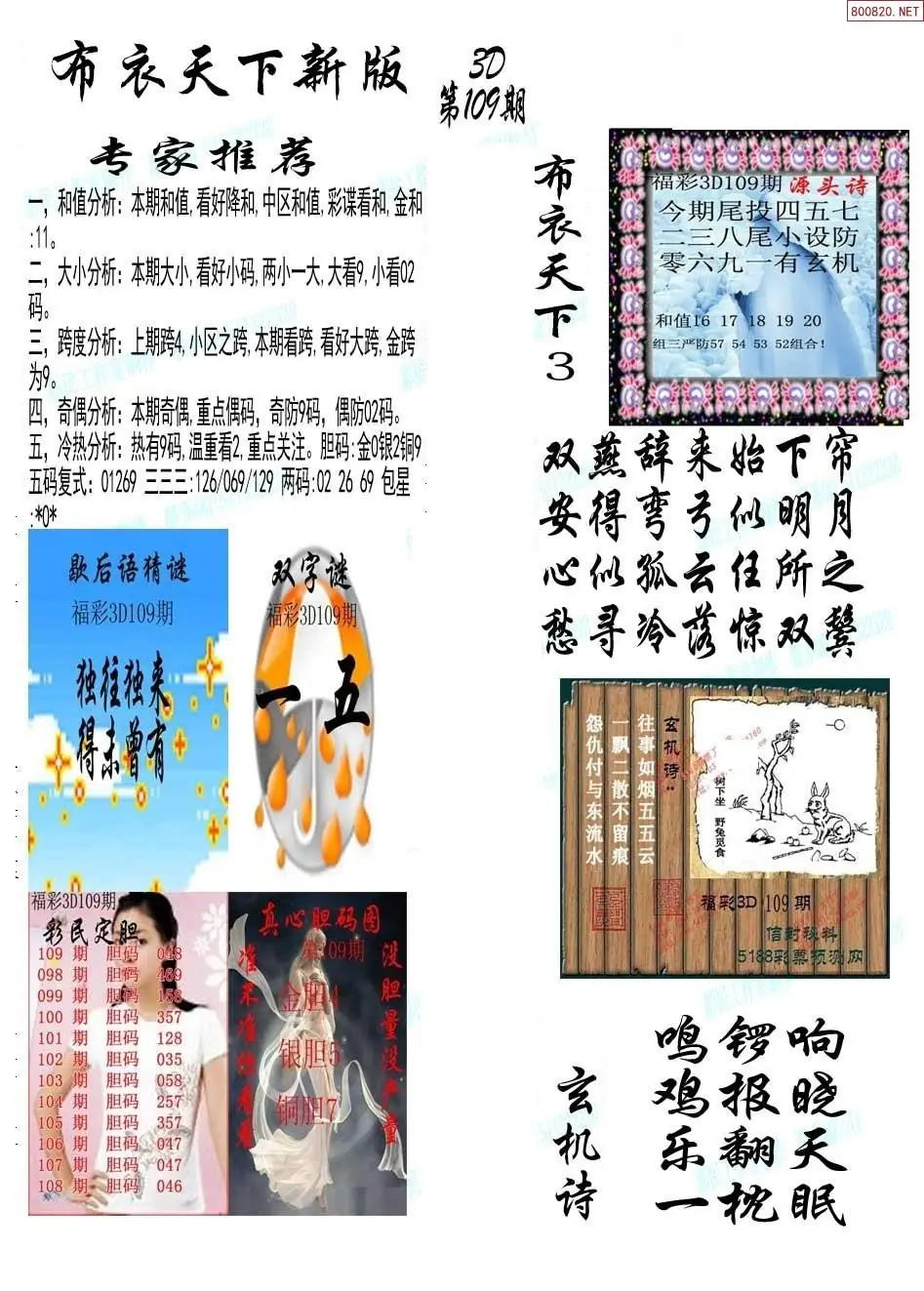 (3)2026109期3D预测总汇全图_福彩3d图谜字谜总汇