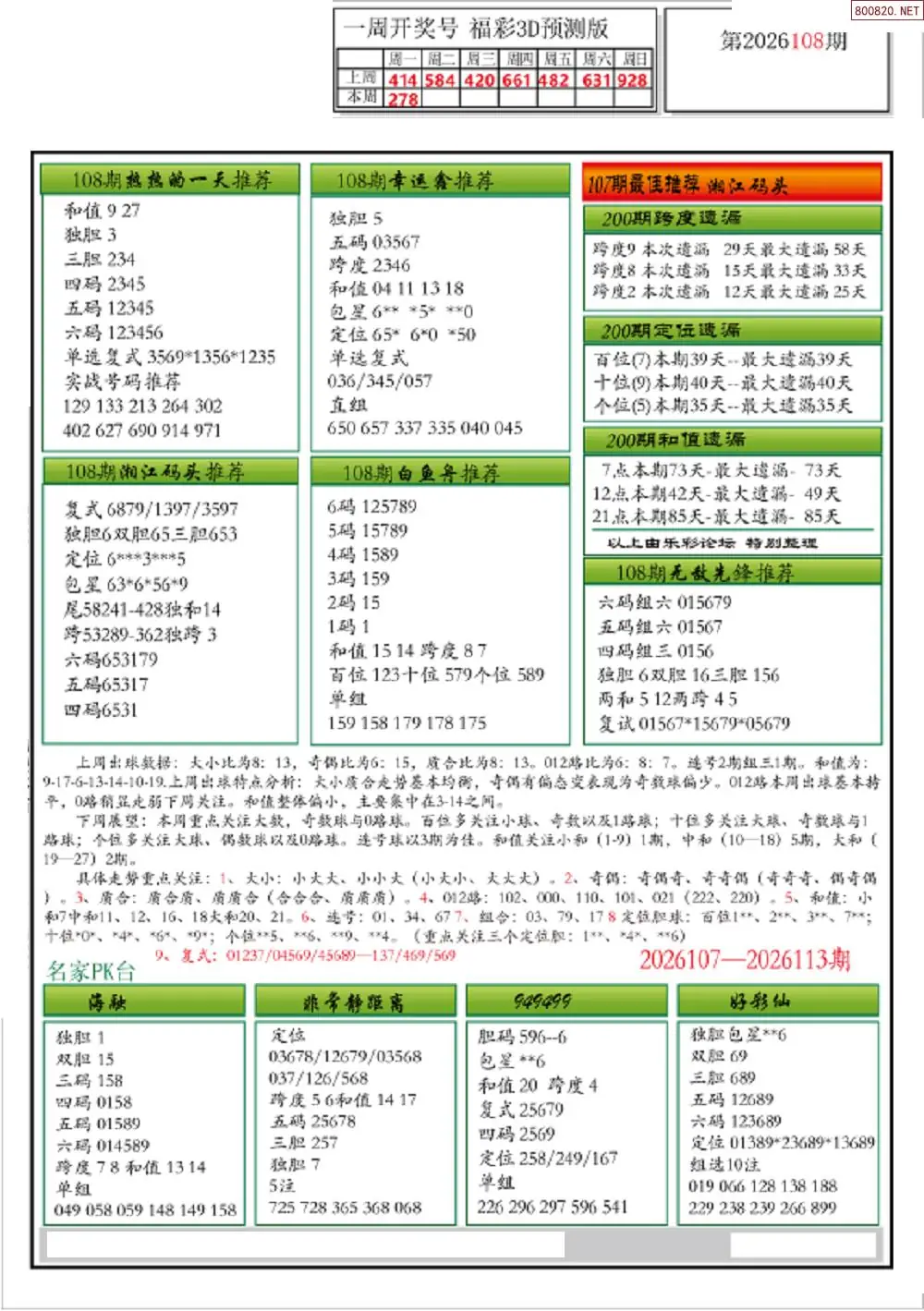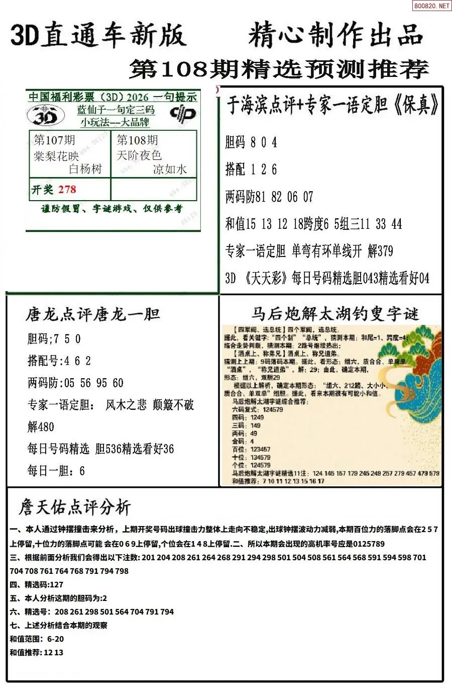 (8)26年108期今日3d各类彩报汇总