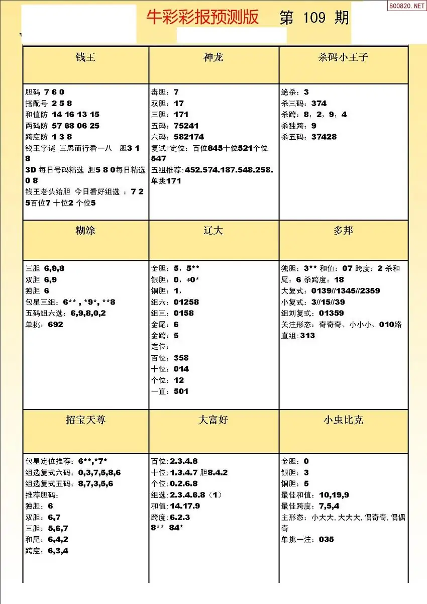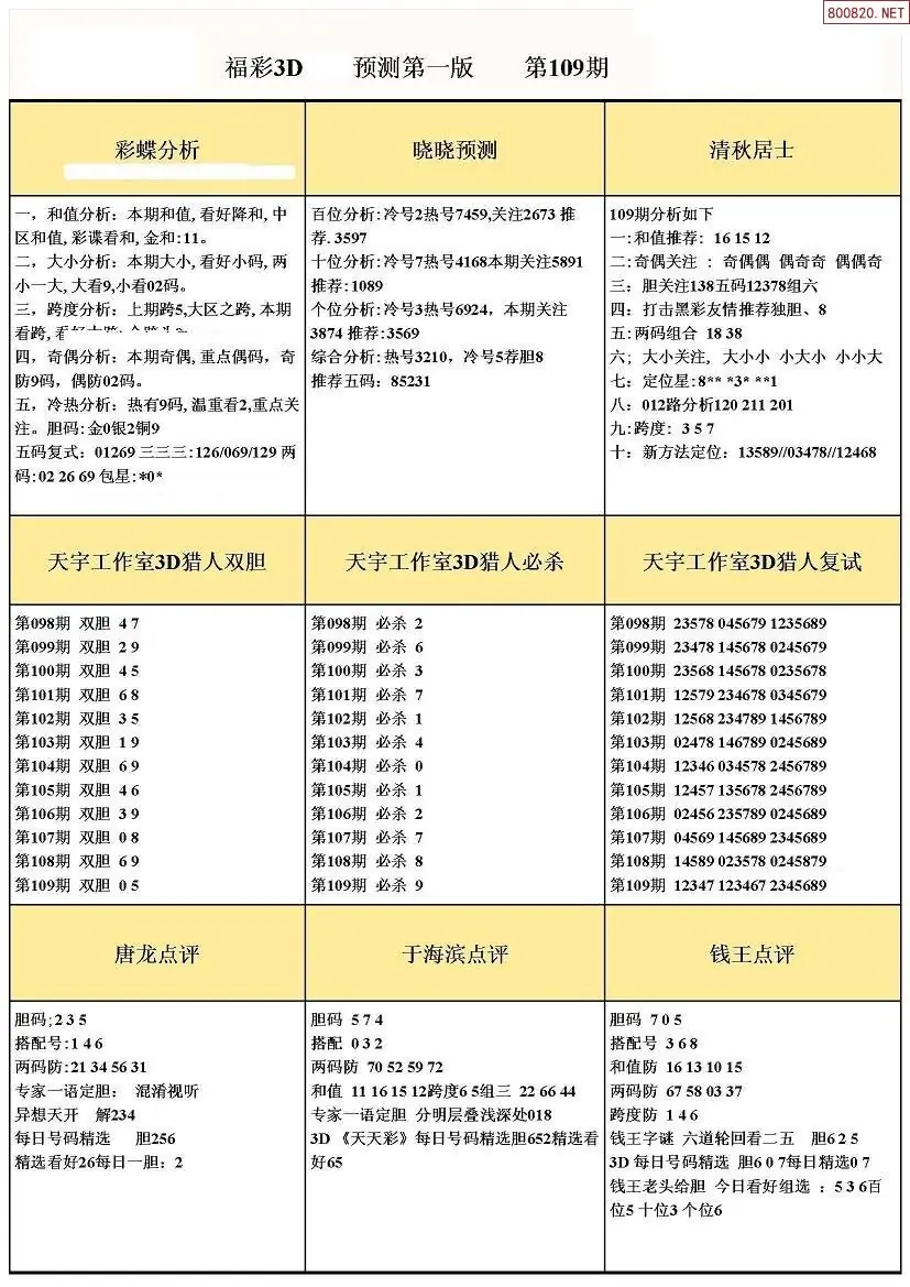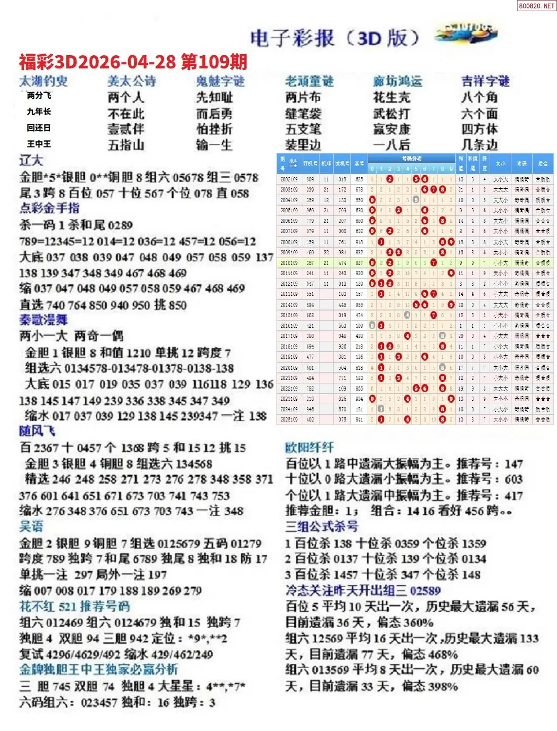 (8)26年109期今日3d各类彩报汇总